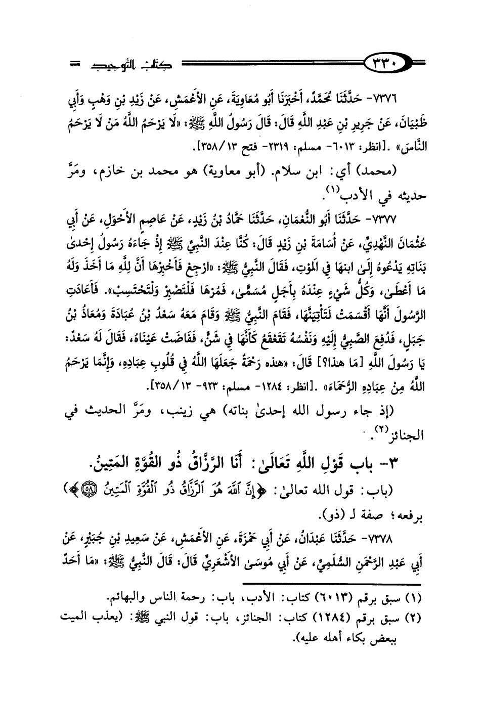 3 - بَابُ قَوْلِ اللَّهِ تَعَالى: {إِنَّ اللَّهَ هُوَ الرَّزَّاقُ ذُو القُوَّةِ المَتِينُ} [الذاريات: 58]