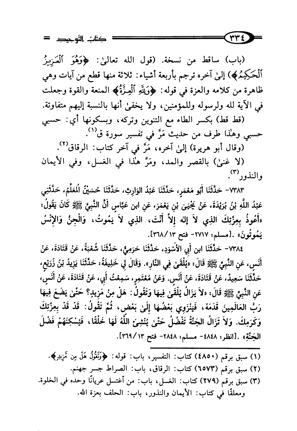 (باب) ساقط من نسخة. (قول الله تعالى: ({وَهُوَ الْعَزِيزُ الْحَكِيمُ}) إلى آخره ترجم بأربعة أشياء: ثلاثة منها قطع من آيات وهي ظاهرة من كلامه والعزة في قوله: {وَلِلَّهِ الْعِزَّةُ} المنعة والقوة وجعلت في الآية لله ولرسوله وللمؤمنين، ولا يخفى أنها بالنسبة إليهم متفاوتة.
