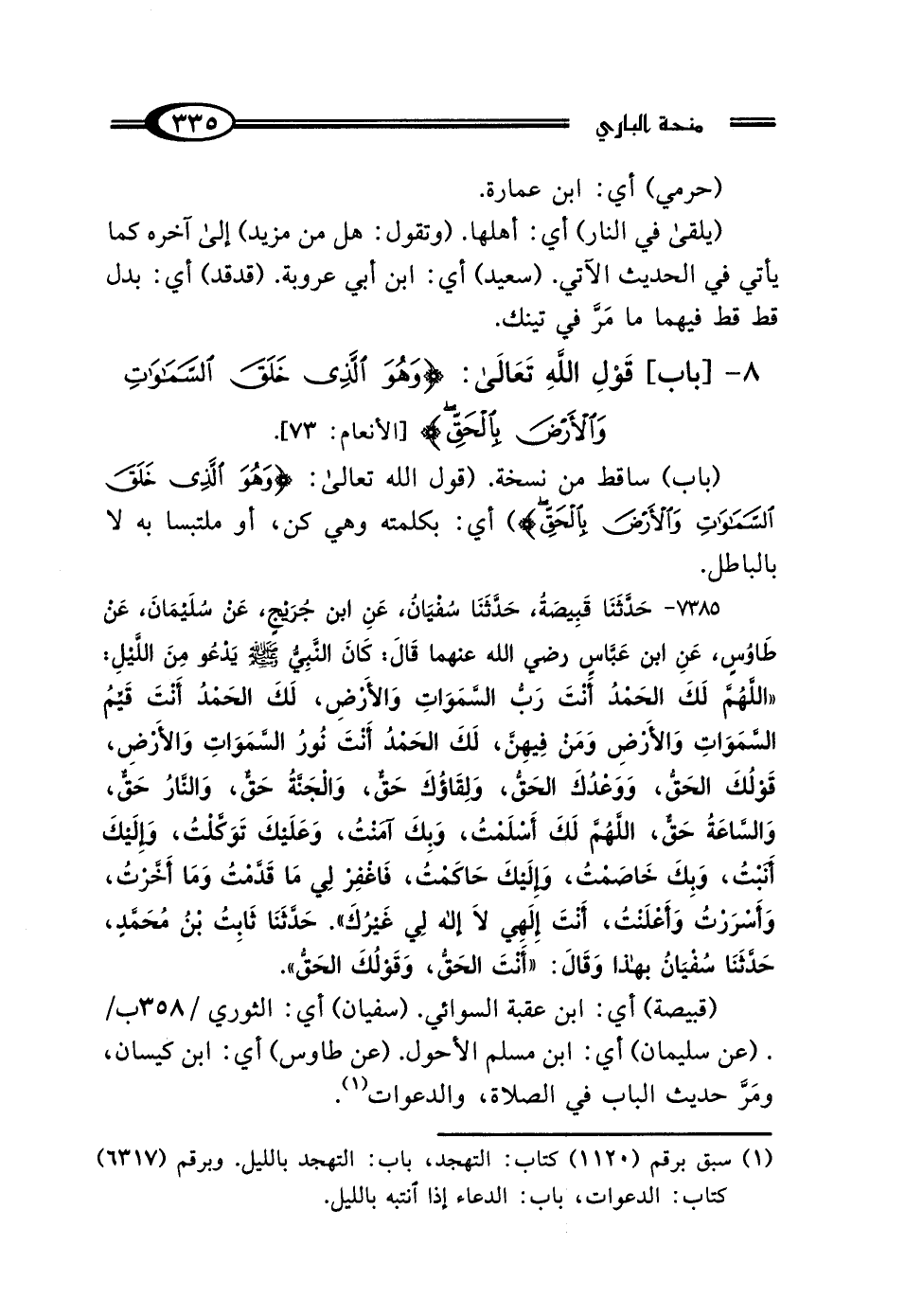 8 - بَابُ قَوْلِ اللَّهِ تَعَالى: {وَهُوَ الَّذِي خَلَقَ السَّمَوَاتِ وَالأَرْضَ بِالحَقِّ}