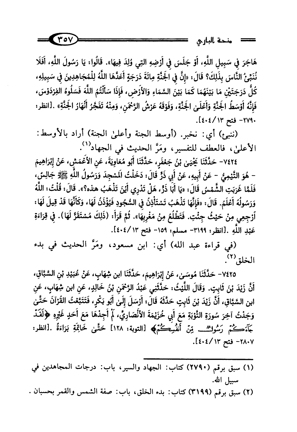 (¬1) سبق برقم (2790) كتاب: الجهاد والسير، باب: درجات المجاهدين في سبيل الله.