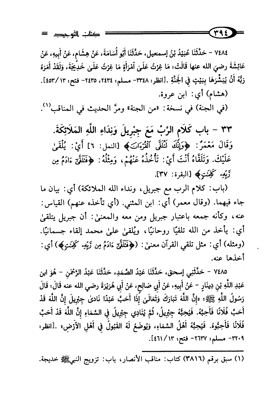 33 - بَابُ كَلامِ الرَّبِّ مَعَ جِبْرِيلَ، وَنِدَاءِ اللَّهِ المَلائِكَةَ