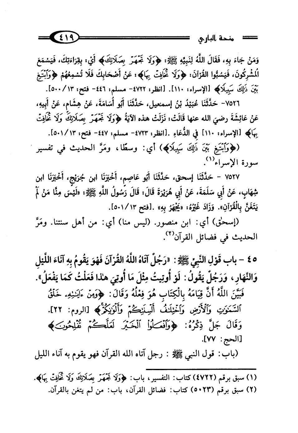 (¬2) سبق برقم (5023) كتاب: فضائل القرآن، باب: من لم يتغن بالقرآن.
