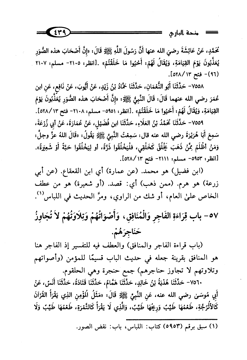 57 - بَابُ قِرَاءَةِ الفَاجِرِ وَالمُنَافِقِ، وَأَصْوَاتُهُمْ وَتِلاوَتُهُمْ لَا تُجَاوزُ حَنَاجِرَهُمْ
