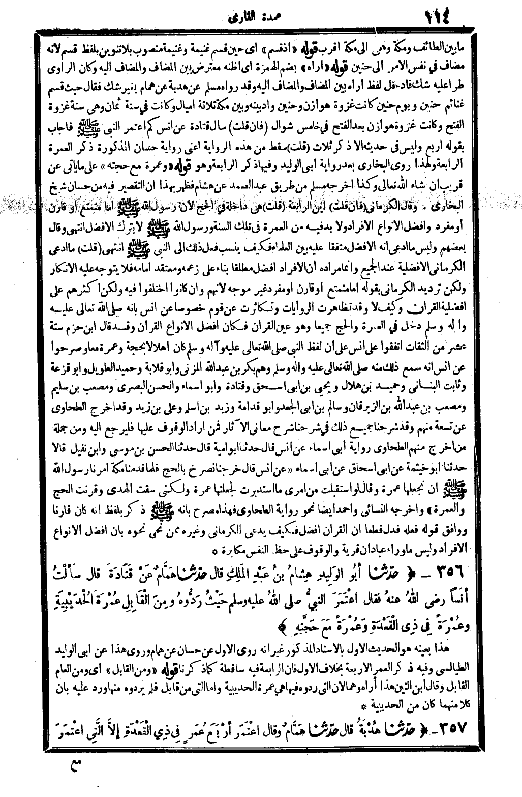 357 - (حَدثنَا هدبة قَالَ حَدثنَا همام وَقَالَ اعْتَمر أَربع عمر فِي ذِي الْقعدَة إِلَّا الَّتِي اعْتَمر