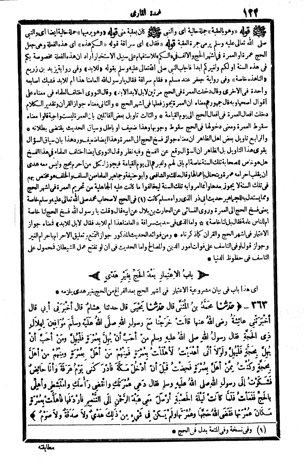 وَقَالَ النَّوَوِيّ أَيْضا اخْتلف الْعلمَاء فِي هَذَا الْفَسْخ هَل هُوَ خَاص للصحابة تِلْكَ السّنة خَاصَّة أم بَاقٍ لَهُم ولغيرهم إِلَى يَوْم الْقِيَامَة، فَيجوز لكل من أحرم بِحَجّ وَلَيْسَ مَعَه هدي أَن يقلب إِحْرَامه عمْرَة ويتحلل بأعمالها؟ وَقَالَ مَالك وَالشَّافِعِيّ وَأَبُو حنيفَة وجماهير الْعلمَاء من السّلف وَالْخلف: هُوَ مُخْتَصّ بهم فِي تِلْكَ السّنة، لَا يجوز بعْدهَا، وَإِنَّمَا أمروا بِهِ تِلْكَ السّنة ليخالفوا مَا كَانَت عَلَيْهِ الْجَاهِلِيَّة من تَحْرِيم الْعمرَة فِي أشهر الْحَج. وَمِمَّا يسْتَدلّ بِهِ للجماهير حَدِيث أبي ذَر الَّذِي رَوَاهُ مُسلم كَانَت فِي الْحَج لأَصْحَاب مُحَمَّد، صلى الله عَلَيْهِ وَسلم، خَاصَّة يَعْنِي: فسخ الْحَج إِلَى الْعمرَة، وروى النَّسَائِيّ عَن الْحَارِث بن بِلَال عَن أَبِيه، قَالَ: (قلت: يَا رَسُول الله} فسخ الْحَج لنا خَاصَّة أم للنَّاس عَامَّة؟ فَقَالَ: بل لنا خَاصَّة) . وَأما الَّذِي فِي حَدِيث سراقَة (ألعامنا هَذَا أم لِلْأَبَد؟ . فَقَالَ: لَا بل لِلْأَبَد) . فَمَعْنَاه جَوَاز الاعتمار فِي أشهر الْحَج وَالْقرَان كَمَا ذَكرْنَاهُ.