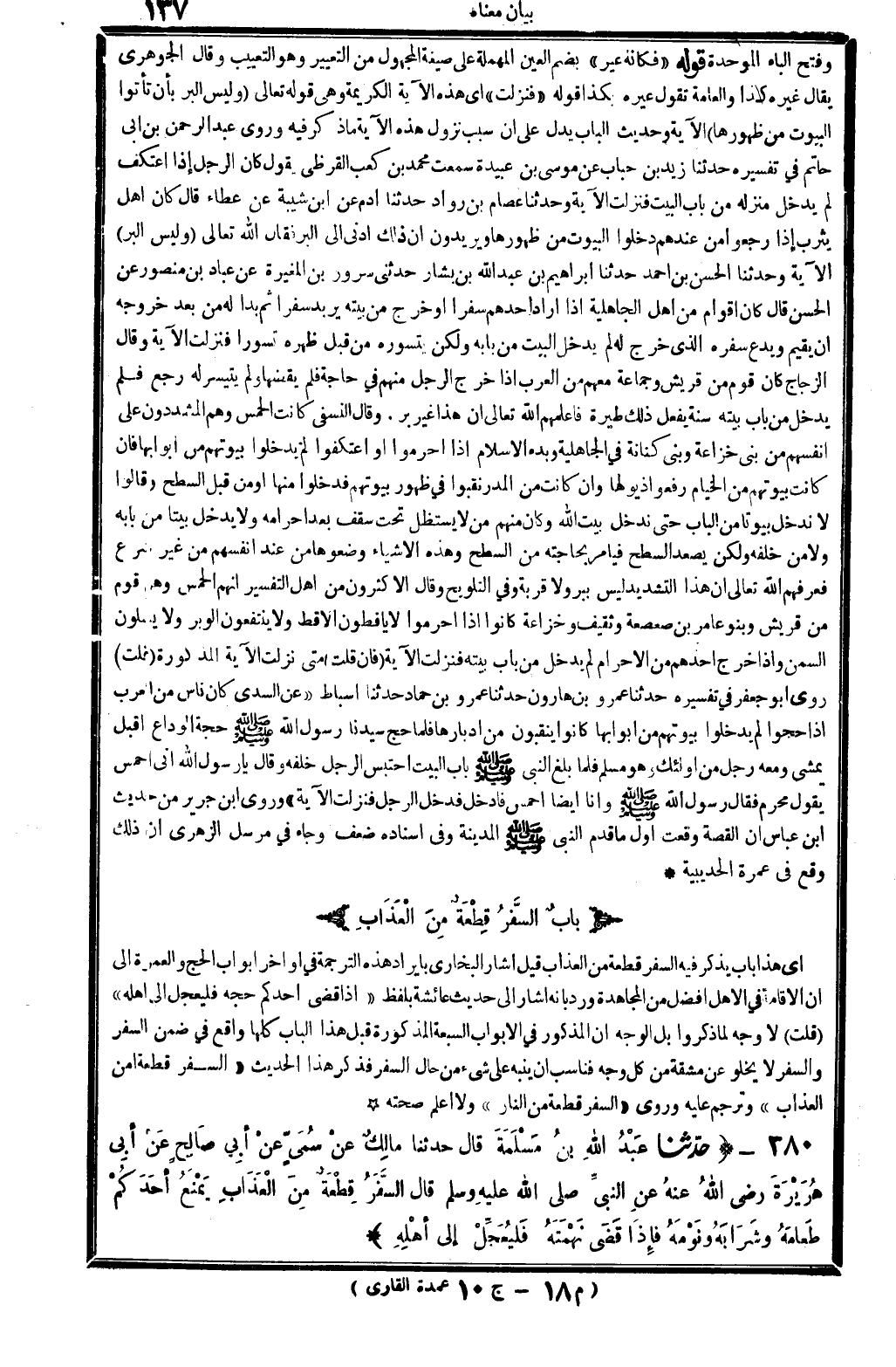 91 - (بابٌ السَّفرُ قِطْعَةٌ مِنَ العَذَابِ)