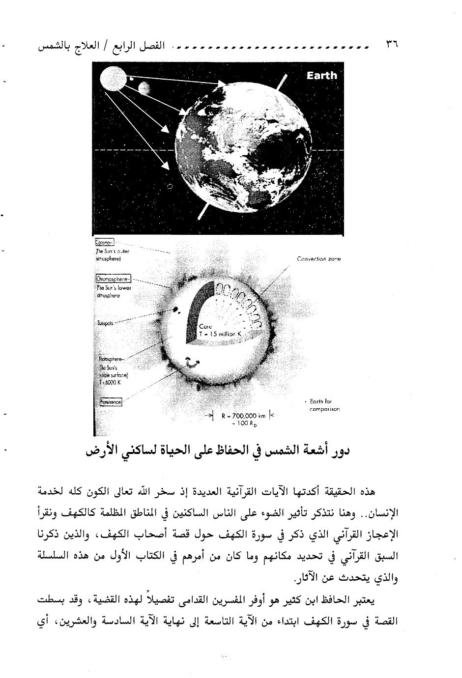 دور أشعة الشمس في الحفاظ على الحياة لساكني الأرض هذه الحقيقة أكدتها الآيات القرآنية العديدة إذ سخر اللّه تعالى الكون كله لخدمة الإنسان .. وهنا نتذكر تأثير الضوء على الناس الساكنين في المناطق المظلمة كالكهف ونقرأ الإعجاز القرآني الذي ذكر في سورة الكهف حول قصة أصحاب الكهف، والذين ذكرنا السبق القرآني في تحديد مكانهم وما كان من أمرهم في الكتاب الأول من هذه السلسلة والذي يتحدث عن الآثار.