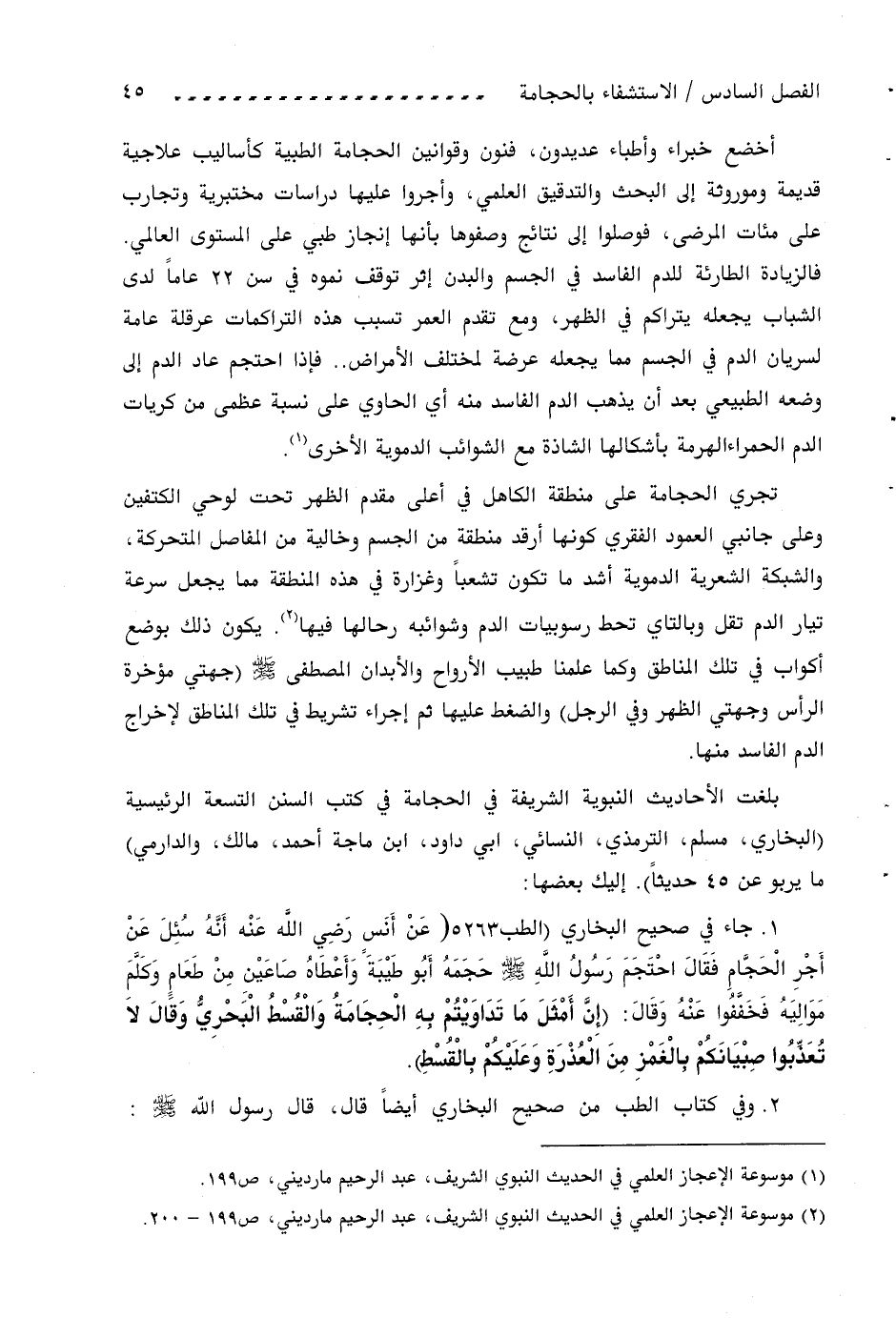(1) موسوعة الإعجاز العلمي في الحديث النبوي الشريف، عبد الرحيم مارديني، ص 199.