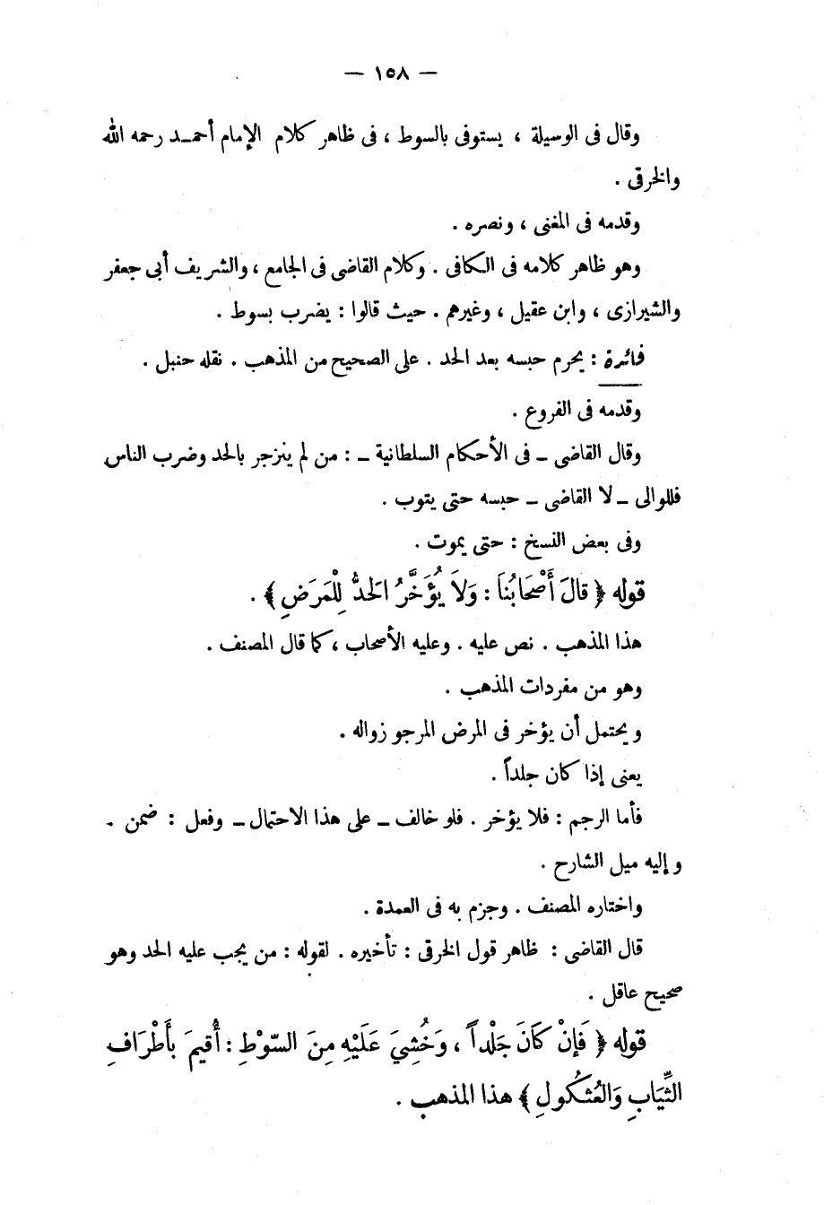 قَوْلُهُ (قَالَ أَصْحَابُنَا: وَلَا يُؤَخَّرُ الْحَدُّ لِلْمَرَضِ) . هَذَا الْمَذْهَبُ، نَصَّ عَلَيْهِ. وَعَلَيْهِ الْأَصْحَابُ، كَمَا قَالَ الْمُصَنِّفُ. وَهُوَ مِنْ مُفْرَدَاتِ الْمَذْهَبِ. وَيَحْتَمِلُ أَنْ يُؤَخَّرَ فِي الْمَرَضِ الْمَرْجُوِّ زَوَالُهُ. يَعْنِي إذَا كَانَ جَلْدًا. فَأَمَّا الرَّجْمُ: فَلَا يُؤَخَّرُ، فَلَوْ خَالَفَ عَلَى هَذَا الِاحْتِمَالِ وَفَعَلَ: ضَمِنَ وَإِلَيْهِ مَيْلُ الشَّارِحِ، وَاخْتَارَهُ الْمُصَنِّفُ، وَجَزَمَ بِهِ فِي الْعُمْدَةِ. قَالَ الْقَاضِي: ظَاهِرُ قَوْلِ الْخِرَقِيِّ: تَأْخِيرُهُ. لِقَوْلِهِ: مَنْ يَجِبُ عَلَيْهِ الْحَدُّ وَهُوَ صَحِيحٌ عَاقِلٌ.