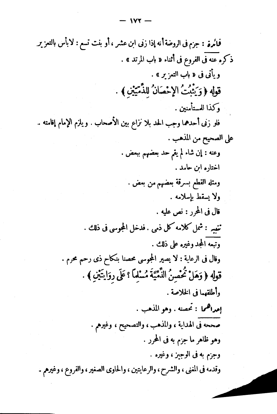 تَنْبِيهٌ: شَمَلَ كَلَامُهُ كُلَّ ذِمِّيٍّ. فَدَخَلَ الْمَجُوسِيُّ فِي ذَلِكَ. وَتَبِعَهُ الْمَجْدُ وَغَيْرُهُ عَلَى ذَلِكَ. وَقَالَ فِي الرِّعَايَةِ: لَا يَصِيرُ الْمَجُوسِيُّ مُحْصَنًا بِنِكَاحِ ذِي رَحِمٍ مَحْرَمٍ.