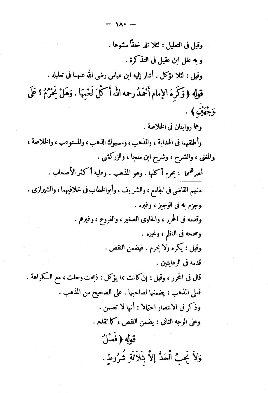 قَوْلُهُ (وَكَرِهَ الْإِمَامُ أَحْمَدُ - رَحِمَهُ اللَّهُ - أَكْلَ لَحْمِهَا. وَهَلْ يَحْرُمُ؟ عَلَى وَجْهَيْنِ) . وَهُمَا رِوَايَتَانِ فِي الْخُلَاصَةِ. وَأَطْلَقَهُمَا فِي الْهِدَايَةِ، وَالْمُذْهَبِ، وَمَسْبُوكِ الذَّهَبِ، وَالْمُسْتَوْعِبِ، وَالْخُلَاصَةِ، وَالْمُغْنِي، وَالشَّرْحِ، وَشَرْحِ ابْنِ مُنَجَّا، وَالزَّرْكَشِيُّ.