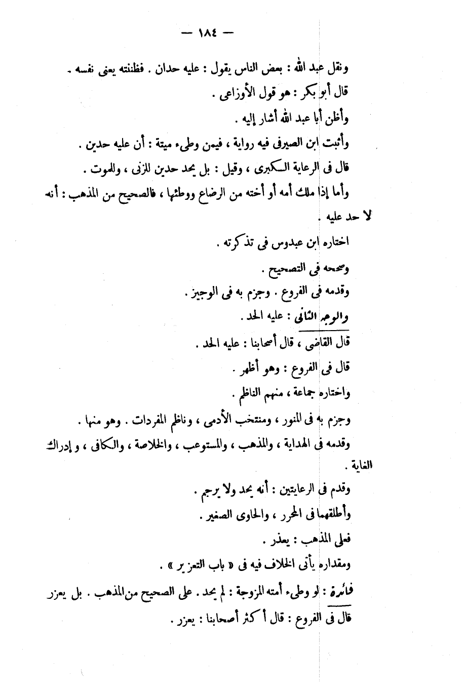 وَالْوَجْهُ الثَّانِي: عَلَيْهِ الْحَدُّ. قَالَ الْقَاضِي، قَالَ أَصْحَابُنَا: عَلَيْهِ الْحَدُّ. قَالَ فِي الْفُرُوعِ: وَهُوَ أَظْهَرُ، وَاخْتَارَهُ جَمَاعَةٌ، مِنْهُمْ النَّاظِمُ، وَجَزَمَ بِهِ فِي الْمُنَوِّرِ، وَمُنْتَخَبِ الْأَدَمِيِّ، وَنَاظِمِ الْمُفْرَدَاتِ. وَهُوَ مِنْهَا، وَقَدَّمَهُ فِي الْهِدَايَةِ، وَالْمُذْهَبِ، وَالْمُسْتَوْعِبِ، وَالْخُلَاصَةِ، وَالْكَافِي، وَإِدْرَاكِ الْغَايَةِ، وَقَدَّمَ فِي الرِّعَايَتَيْنِ: أَنَّهُ يُحَدُّ وَلَا يُرْجَمُ. وَأَطْلَقَهُمَا فِي الْمُحَرَّرِ، وَالْحَاوِي الصَّغِيرِ. فَعَلَى الْمَذْهَبِ: يُعَزَّرُ. وَمِقْدَارُهُ يَأْتِي الْخِلَافُ فِيهِ فِي " بَابِ التَّعْزِيرِ ".
