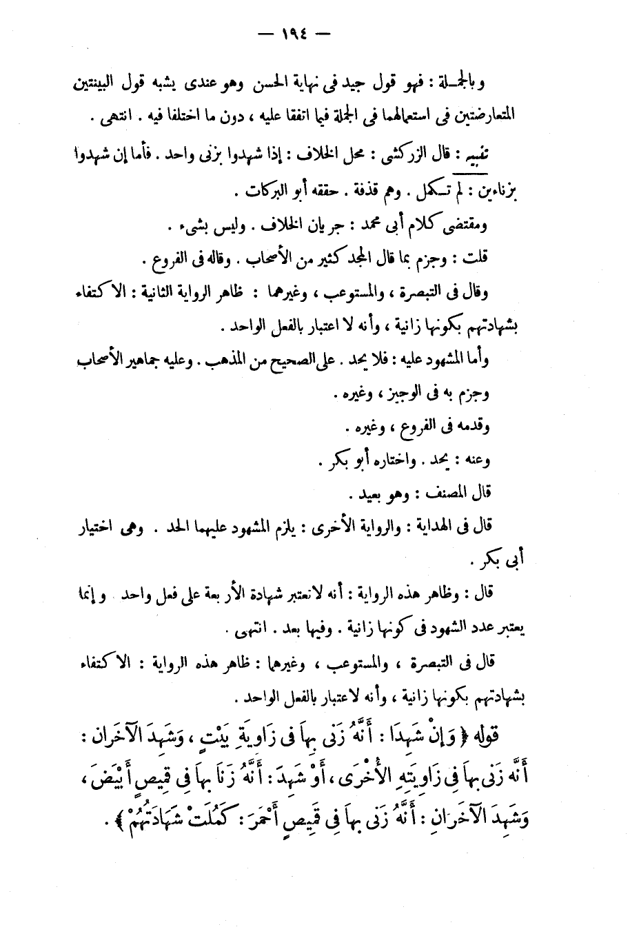 قَالَ فِي التَّبْصِرَةِ، وَالْمُسْتَوْعِبِ، وَغَيْرِهِمَا: ظَاهِرُ هَذِهِ الرِّوَايَةِ: الِاكْتِفَاءُ بِشَهَادَتِهِمْ بِكَوْنِهَا زَانِيَةً، وَأَنَّهُ لَا اعْتِبَارَ بِالْفِعْلِ الْوَاحِدِ.