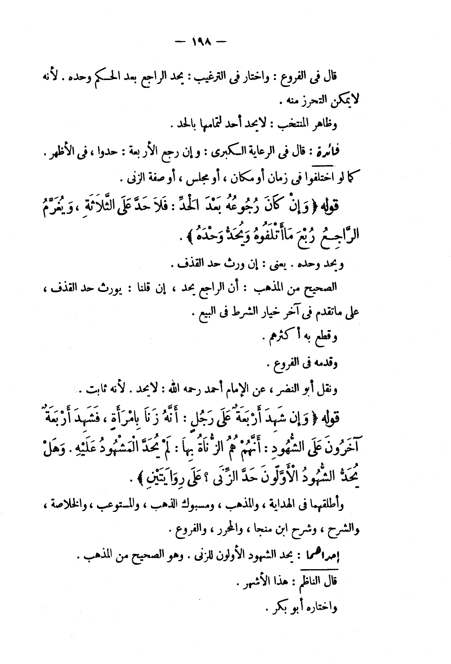 قَوْلُهُ (وَإِنْ كَانَ رُجُوعُهُ بَعْدَ الْحَدِّ: فَلَا حَدَّ عَلَى الثَّلَاثَةِ، وَيَغْرَمُ الرَّاجِعُ رُبْعَ مَا أَتْلَفُوهُ وَيُحَدُّ وَحْدَهُ) . وَيُحَدُّ وَحْدَهُ. يَعْنِي: إنْ وَرِثَ حَدَّ الْقَذْفِ، الصَّحِيحُ مِنْ الْمَذْهَبِ: أَنَّ الرَّاجِعَ يُحَدُّ، إنْ قُلْنَا: يُورَثُ حَدُّ الْقَذْفِ، عَلَى مَا تَقَدَّمَ فِي آخِرِ خِيَارِ الشَّرْطِ فِي الْبَيْعِ، وَقَطَعَ بِهِ أَكْثَرُهُمْ، وَقَدَّمَهُ فِي الْفُرُوعِ. وَنَقَلَ أَبُو النَّضْرِ، عَنْ الْإِمَامِ أَحْمَدَ - رَحِمَهُ اللَّهُ -: لَا يُحَدُّ؛ لِأَنَّهُ ثَابِتٌ.