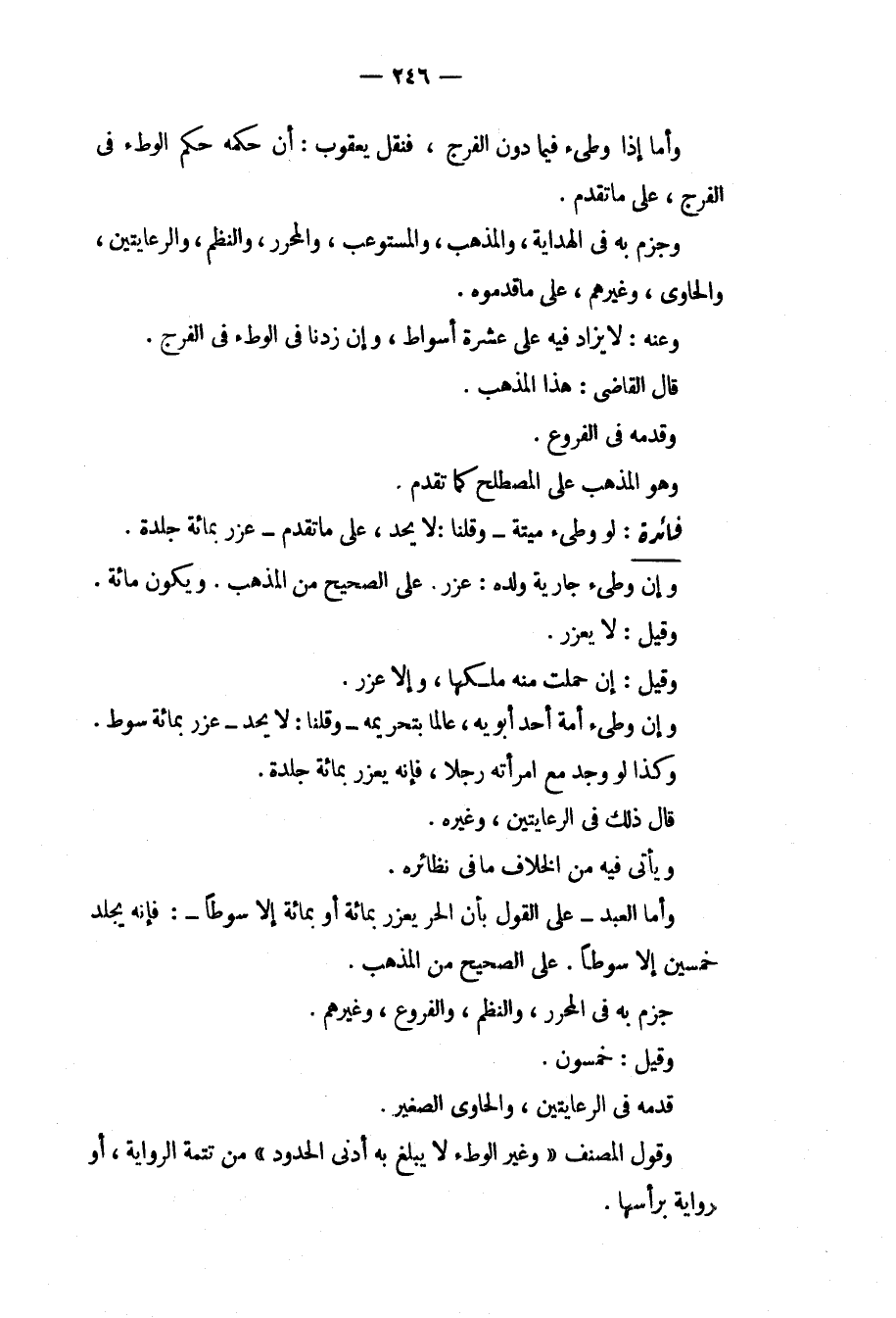 وَأَمَّا إذَا وَطِئَ فِيمَا دُونَ الْفَرْجِ، فَنَقَلَ يَعْقُوبُ: أَنَّ حُكْمَهُ حُكْمُ الْوَطْءِ فِي الْفَرْجِ، عَلَى مَا تَقَدَّمَ، وَجَزَمَ بِهِ فِي الْهِدَايَةِ، وَالْمُذْهَبِ، وَالْمُسْتَوْعِبِ، وَالْمُحَرَّرِ، وَالنَّظْمِ، وَالرِّعَايَتَيْنِ، وَالْحَاوِي، وَغَيْرِهِمْ، عَلَى مَا قَدَّمُوهُ. وَعَنْهُ: لَا يُزَادُ فِيهِ عَلَى عَشْرَةِ أَسْوَاطٍ، وَإِنْ زِدْنَا فِي الْوَطْءِ فِي الْفَرْجِ. قَالَ الْقَاضِي: هَذَا الْمَذْهَبُ، وَقَدَّمَهُ فِي الْفُرُوعِ. وَهُوَ الْمَذْهَبُ عَلَى الْمُصْطَلَحِ كَمَا تَقَدَّمَ.
