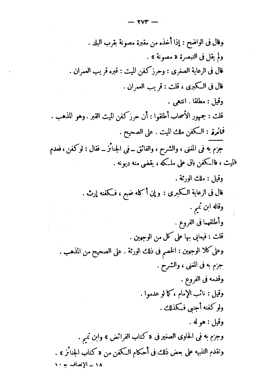 كتاب الإنصاف في معرفة الراجح من الخلاف للمرداوي (اسم الجزء: 10)