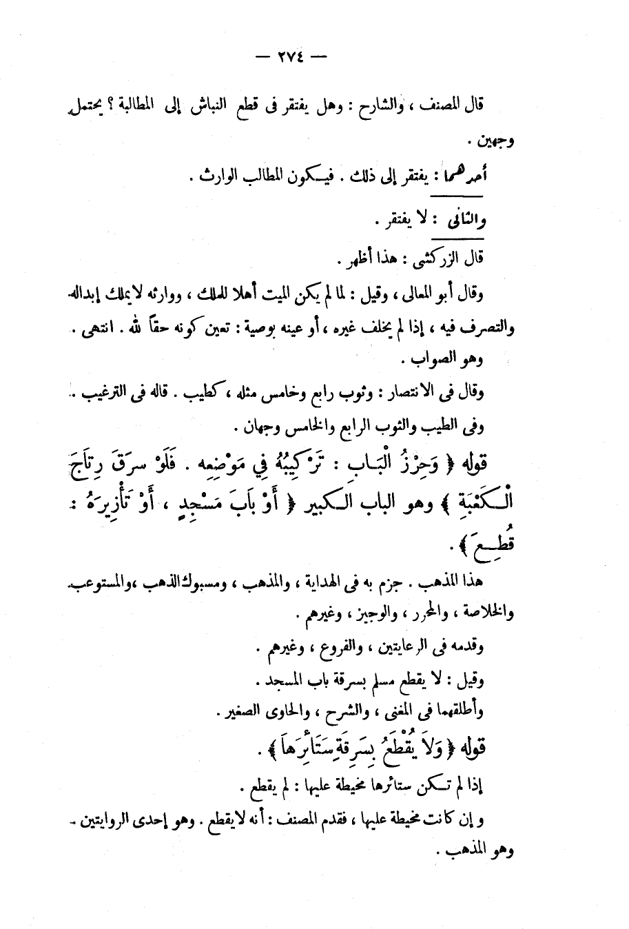 قَالَ الْمُصَنِّفُ، وَالشَّارِحُ: وَهَلْ يُفْتَقَرُ فِي قَطْعِ النَّبَّاشِ إلَى الْمُطَالَبَةِ؟ يَحْتَمِلُ وَجْهَيْنِ. أَحَدُهُمَا: يُفْتَقَرُ إلَى ذَلِكَ. فَيَكُونُ الْمُطَالَبُ الْوَارِثَ.