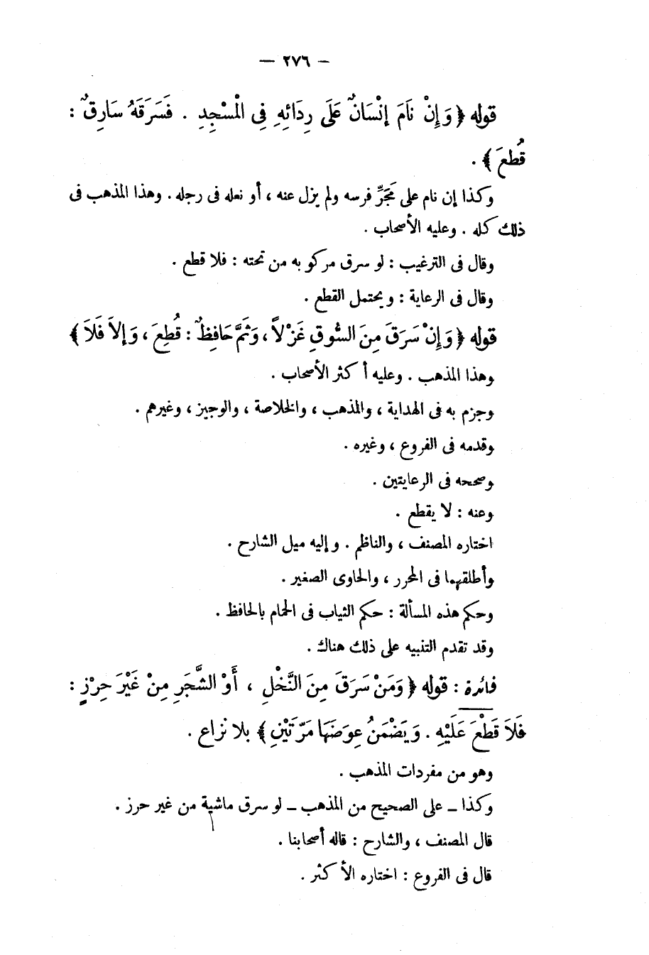 قَوْلُهُ (وَإِنْ نَامَ إنْسَانٌ عَلَى رِدَائِهِ فِي الْمَسْجِدِ. فَسَرَقَهُ سَارِقٌ: قُطِعَ) . وَكَذَا إنْ نَامَ عَلَى مَجَرِّ فَرَسِهِ وَلَمْ يَزُلْ عَنْهُ، أَوْ نَعْلِهِ فِي رِجْلِهِ. وَهَذَا الْمَذْهَبُ فِي ذَلِكَ كُلِّهِ. وَعَلَيْهِ الْأَصْحَابُ. وَقَالَ فِي التَّرْغِيبِ: لَوْ سَرَقَ مَرْكُوبَهُ مِنْ تَحْتِهِ: فَلَا قَطْعَ. وَقَالَ فِي الرِّعَايَةِ: وَيُحْتَمَلُ الْقَطْعُ.