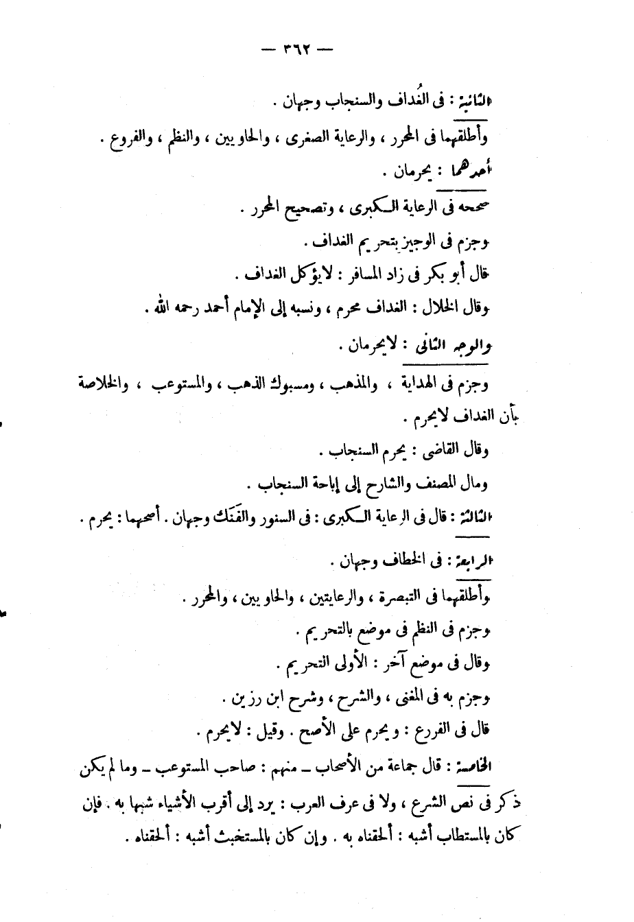 الثَّانِيَةُ: فِي الْغُدَافِ وَالسِّنْجَابِ وَجْهَانِ. وَأَطْلَقَهُمَا فِي الْمُحَرَّرِ، وَالرِّعَايَةِ الصُّغْرَى، وَالْحَاوِيَيْنِ، وَالنَّظْمِ، وَالْفُرُوعِ. أَحَدُهُمَا: يَحْرُمَانِ. صَحَّحَهُ فِي الرِّعَايَةِ الْكُبْرَى، وَتَصْحِيحِ الْمُحَرَّرِ، وَجَزَمَ فِي الْوَجِيزِ بِتَحْرِيمِ الْغُدَافِ. قَالَ أَبُو بَكْرٍ فِي زَادِ الْمُسَافِرِ: لَا يُؤْكَلُ الْغُدَافُ. وَقَالَ الْخَلَّالُ: الْغُدَافُ مُحَرَّمٌ، وَنَسَبَهُ إلَى الْإِمَامِ أَحْمَدَ - رَحِمَهُ اللَّهُ -. وَالْوَجْهُ الثَّانِي: لَا يَحْرُمَانِ، وَجَزَمَ فِي الْهِدَايَةِ، وَالْمُذْهَبِ، وَمَسْبُوكِ الذَّهَبِ، وَالْمُسْتَوْعِبِ، وَالْخُلَاصَةِ بِأَنَّ الْغُدَافَ لَا يَحْرُمُ. وَقَالَ الْقَاضِي: يَحْرُمُ السِّنْجَابُ. وَمَالَ الْمُصَنِّفُ وَالشَّارِحُ إلَى إبَاحَةِ السِّنْجَابِ. الثَّالِثَةُ: قَالَ فِي الرِّعَايَةِ الْكُبْرَى: فِي السِّنَّوْرِ وَالْفَنَكِ وَجْهَانِ، أَصَحُّهُمَا: يَحْرُمُ. الرَّابِعَةُ: فِي الْخَطَّافِ وَجْهَانِ. وَأَطْلَقَهُمَا فِي التَّبْصِرَةِ، وَالرِّعَايَتَيْنِ، وَالْحَاوِيَيْنِ، وَالْمُحَرَّرِ، وَجَزَمَ فِي النَّظْمِ فِي مَوْضِعٍ بِالتَّحْرِيمِ. وَقَالَ فِي مَوْضِعٍ آخَرَ: الْأَوْلَى التَّحْرِيمُ، وَجَزَمَ بِهِ فِي الْمُغْنِي، وَالشَّرْحِ، وَشَرْحِ ابْنِ رَزِينٍ. قَالَ فِي الْفُرُوعِ: وَيَحْرُمُ عَلَى الْأَصَحِّ. وَقِيلَ: لَا يَحْرُمُ. الْخَامِسَةُ: قَالَ جَمَاعَةٌ مِنْ الْأَصْحَابِ مِنْهُمْ: صَاحِبُ الْمُسْتَوْعِبِ وَمَا لَمْ يَكُنْ ذُكِرَ فِي نَصِّ الشَّرْعِ، وَلَا فِي عُرْفِ الْعَرَبِ: يُرَدُّ إلَى أَقْرَبِ الْأَشْيَاءِ شَبَهًا بِهِ. فَإِنْ كَانَ بِالْمُسْتَطَابِ أَشْبَهَ: أَلْحَقْنَاهُ بِهِ. وَإِنْ كَانَ بِالْمُسْتَخْبَثِ أَشْبَهَ: أَلْحَقْنَاهُ.