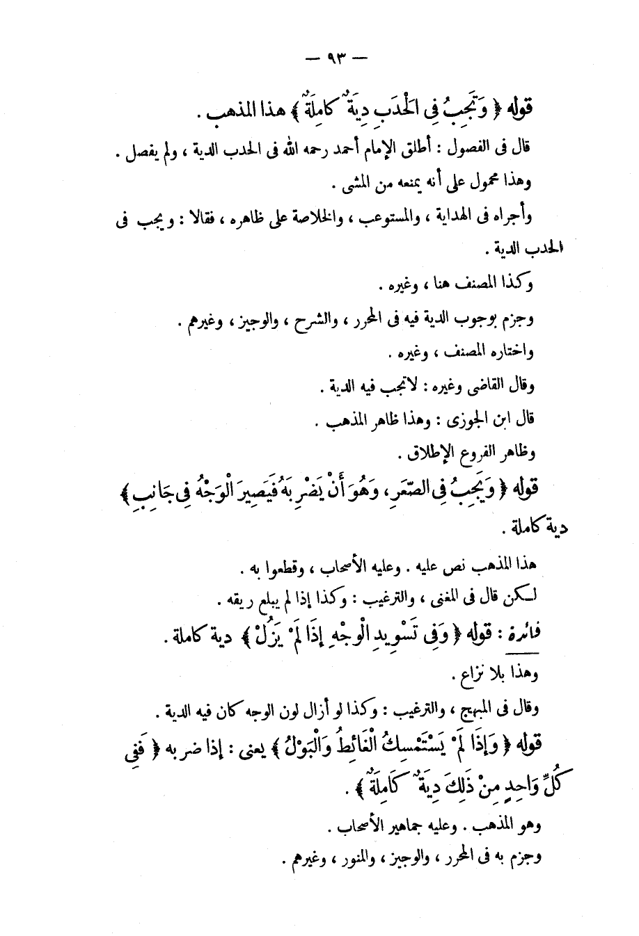 قَوْلُهُ (وَتَجِبُ فِي الْحَدَبِ دِيَةٌ كَامِلَةٌ) هَذَا الْمَذْهَبُ. قَالَ فِي الْفُصُولِ: أَطْلَقَ الْإِمَامُ أَحْمَدُ - رَحِمَهُ اللَّهُ - فِي الْحَدَبِ الدِّيَةُ، وَلَمْ يُفَصِّلْ. وَهَذَا مَحْمُولٌ عَلَى أَنَّهُ يَمْنَعُهُ مِنْ الْمَشْيِ. وَأَجْرَاهُ فِي الْهِدَايَةِ، وَالْمُسْتَوْعِبِ، وَالْخُلَاصَةِ عَلَى ظَاهِرِهِ، فَقَالَا: وَيَجِبُ فِي الْحَدَبِ الدِّيَةُ. وَكَذَا الْمُصَنِّفُ هُنَا، وَغَيْرُهُ، وَجَزَمَ بِوُجُوبِ الدِّيَةِ فِيهِ فِي الْمُحَرَّرِ، وَالشَّرْحِ، وَالْوَجِيزِ، وَغَيْرِهِمْ، وَاخْتَارَهُ الْمُصَنِّفُ، وَغَيْرُهُ. وَقَالَ الْقَاضِي وَغَيْرُهُ: لَا تَجِبُ فِيهِ الدِّيَةُ. قَالَ ابْنُ الْجَوْزِيِّ: وَهَذَا ظَاهِرُ الْمَذْهَبِ، وَظَاهِرُ الْفُرُوعِ الْإِطْلَاقُ.