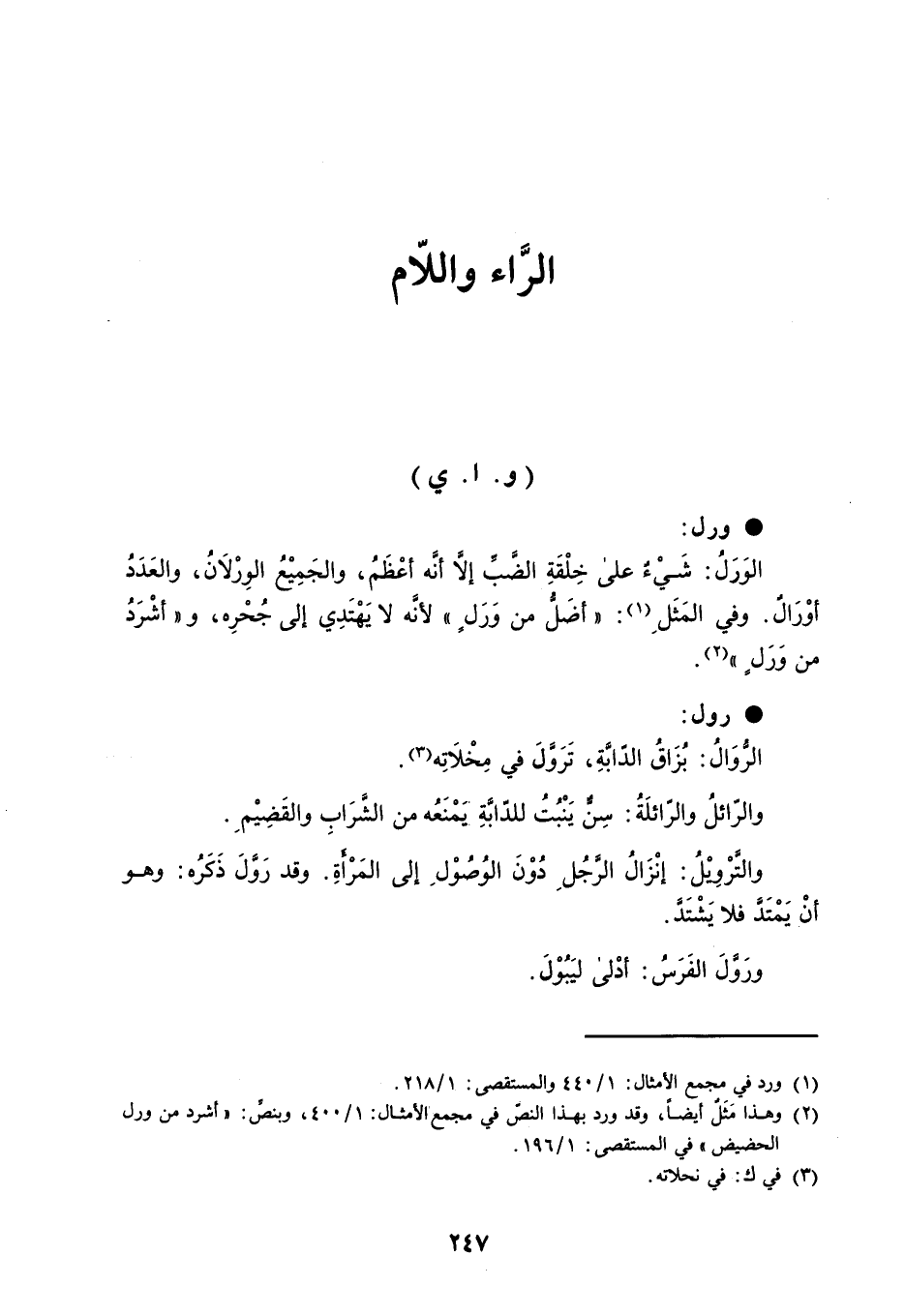 الرَّاء واللاّم ' و . ا . ي '