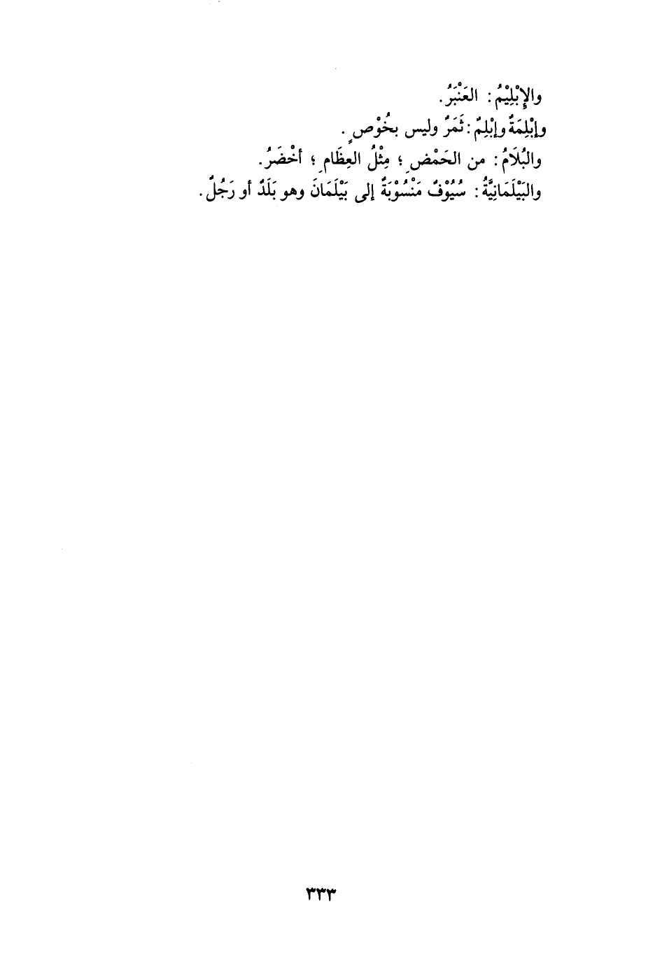 والإِبْلِيْمُ : العَنْبَرُ . وإبْلِمَةٌ وإبْلِمٌ : ثَمَرٌ وليس بخُوْصٍ . والبُلاَمُ : من الحَمْضِ ؛ مِثْلُ العِظَامِ ؛ أخْضَرُ . والبَيْلَمَانِيَّةُ : سُيُوْفٌ مَنْسُوْبَةٌ إلى بَيْلَمَانَ وهو بَلَدٌ أو رَجُلٌ .