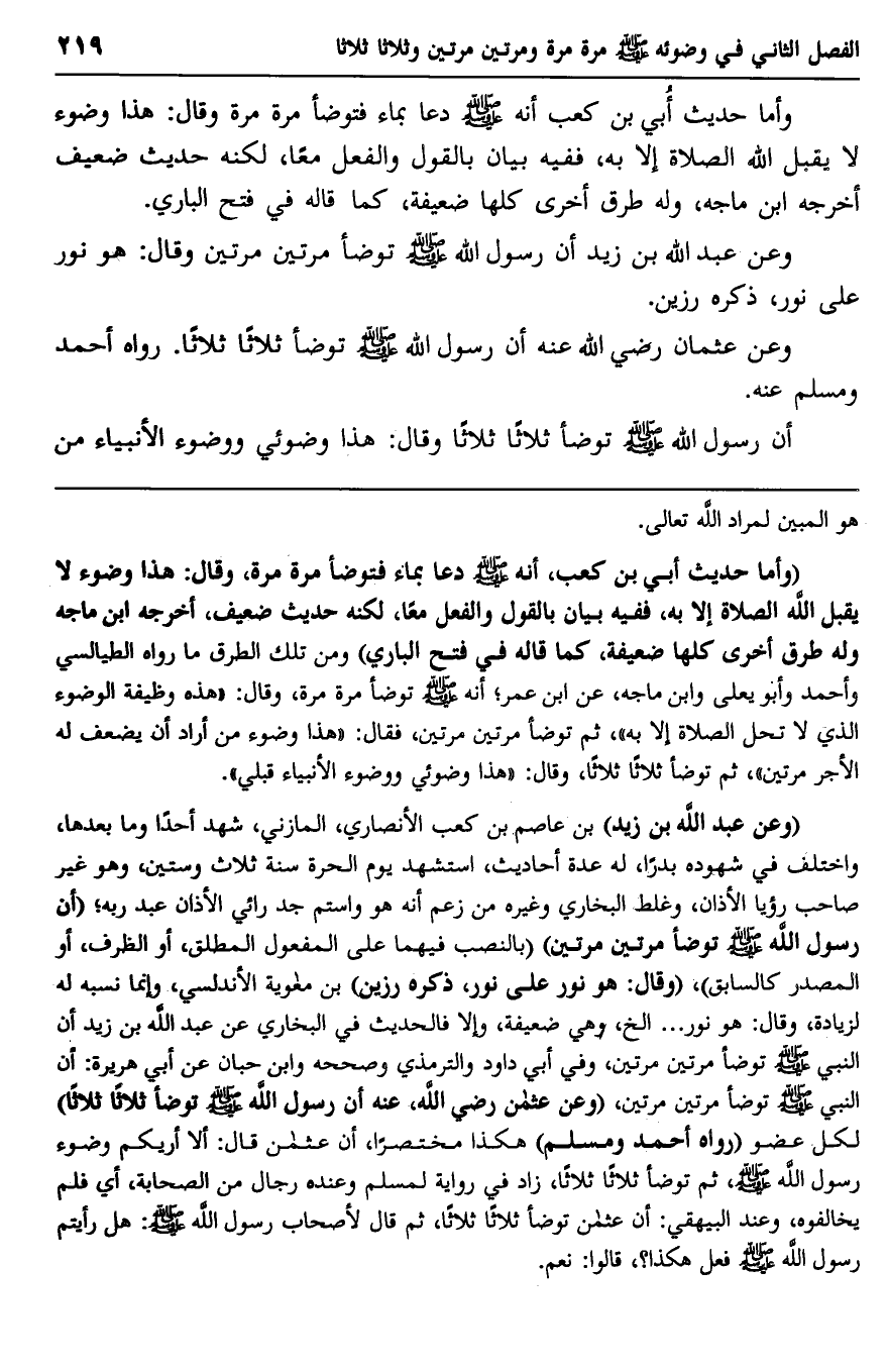 وعن عثمان رضي الله عنه أن رسول الله صلى الله عليه وسلم توضأ ثلاثا ثلاثا. رواه أحمد ومسلم عنه.
