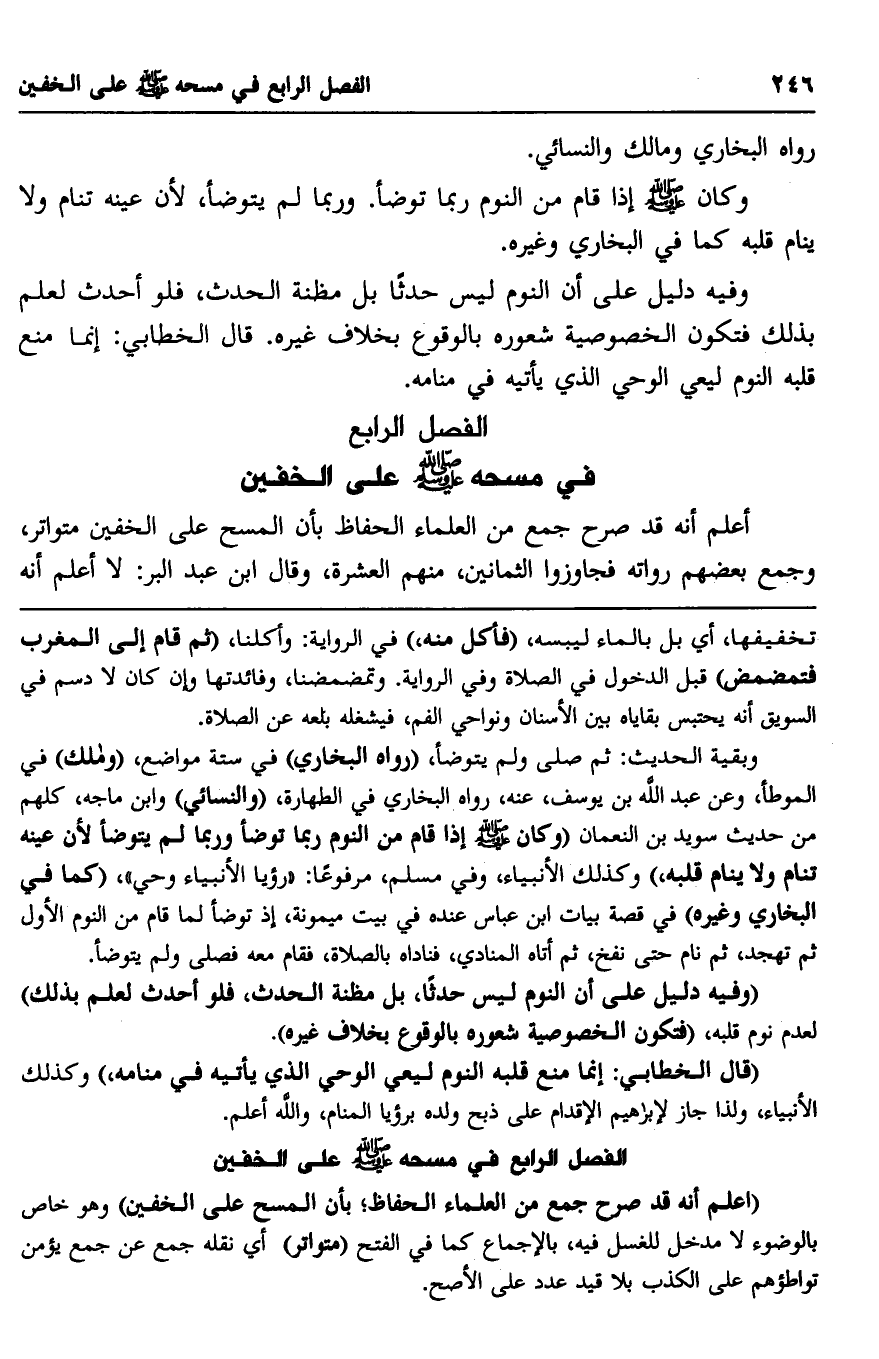 وكان صلى الله عليه وسلم إذا قام من النوم ربما توضأ. وربما لم يتوضأ لأن عينه تنام ولا ينام قلبه كما في البخاري وغيره.
