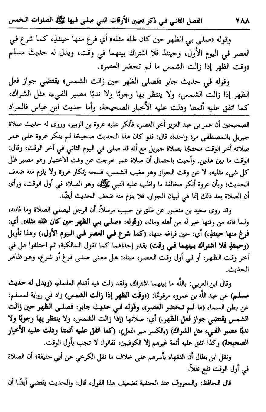 وقال ابن العربي: بالله ما بينهما اشتراك، ولقد زلت فيه أقدام العلماء، "ويدل له حديث مسلم" عن عبد الله بن عمرو، مرفوعا: "وقت الظهر إذا زالت الشمس" زاد في رواية لمسلم: "عن بطن السماء". "ما لم تحضر العصر". "وقوله في حديث جابر: فصلى الظهر حين زالت الشمس يقتضي جواز فعل الظهر" أي: صلاتها "إذا زالت الشمس، ولا ينتظر بها وجوبا ولا ندبا مصير الفيء مثل الشراك"، "بالكسر سير النعل"، "كما اتفق عليه أئمتنا ودلت عليه الأخبار الصحيحة" وكذا اتفق عليه أئمة غيرهم إلا الكوفيين، فقالوا: لا تجب بأول الوقت.