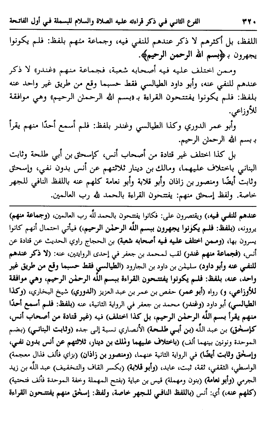 وأبو عمر الدوري وكذا الطيالسي وغندر بلفظ: فلم أسمع أحدًا منهم يقرأ بـ {بِسْمِ اللَّهِ الرَّحْمَنِ الرَّحِيمِ} .