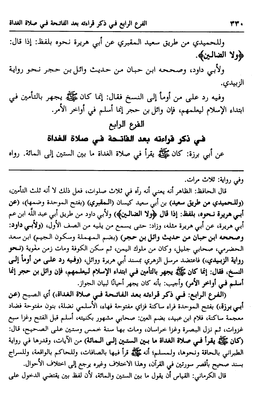 الفرع الرابع: في ذكر قراءته بعد الفاتحة في صلاة الغداة