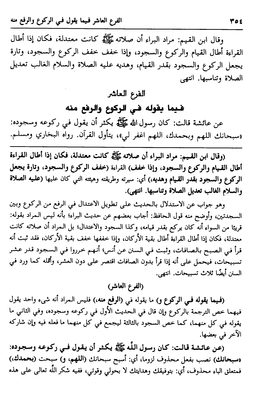وقال ابن القيم: مراد البراء أن صلاته صلى الله عليه وسلم كانت معتدلة، فكان إذا أطال القراءة أطال القيام والركوع والسجود، وإذا خفف خفف الركوع والسجود، وتارة يجعل الركوع والسجود بقدر القيام، وهديه عليه الصلاة والسلام الغالب تعديل الصلاة وتناسبها. انتهى.