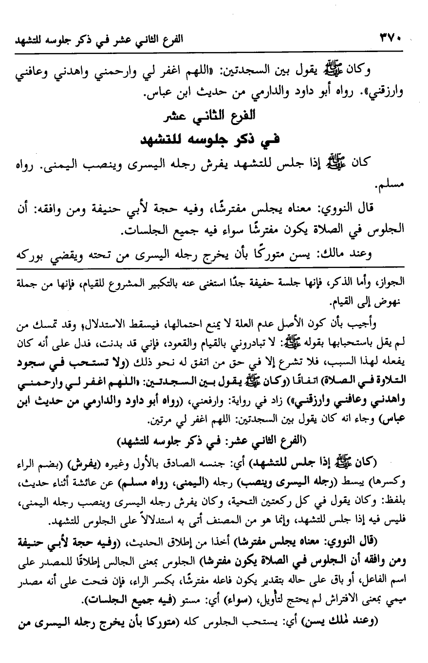 الفرع الثاني عشر: في ذكر جلوسه للتشهد