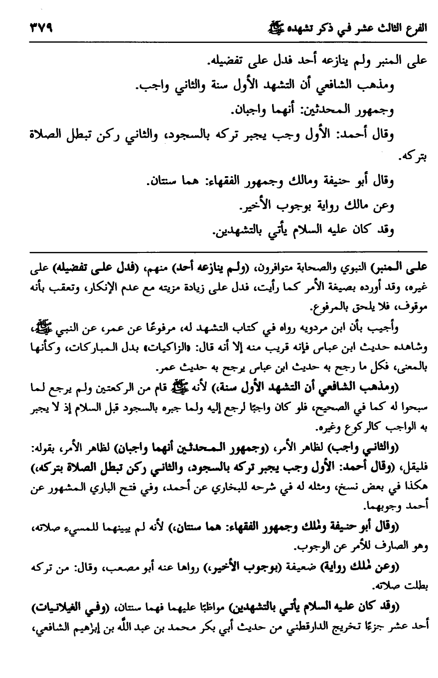 ومذهب الشافعي أن التشهد الأول سنة والثاني واجب.