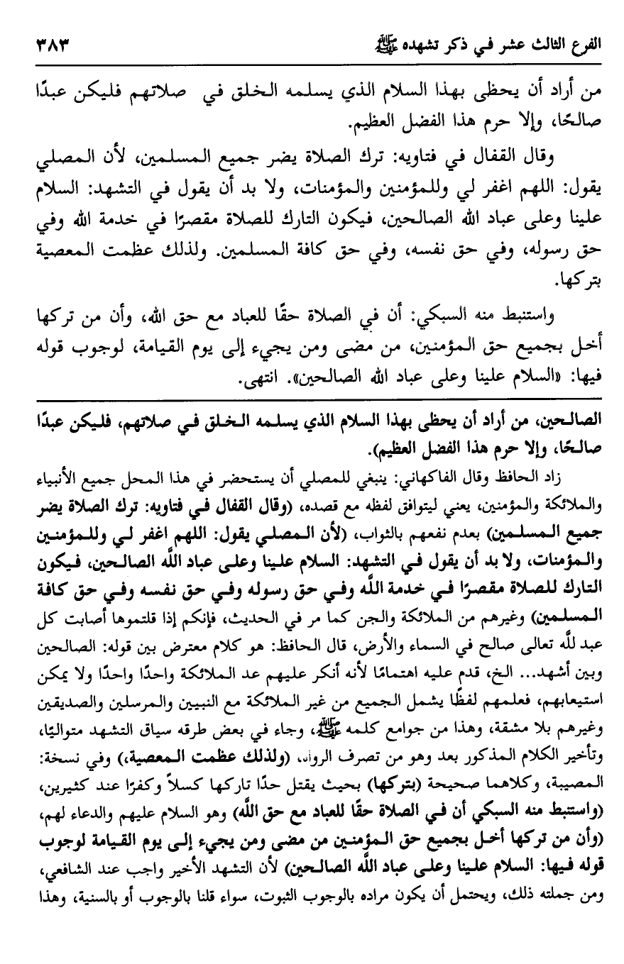 الصالحين، من أراد أن يحظى بهذا السلام الذي يسلمه الخلق في صلاتهم، فليكن عبدًا صالحًا، وإلا حرم هذا الفضل العظيم".