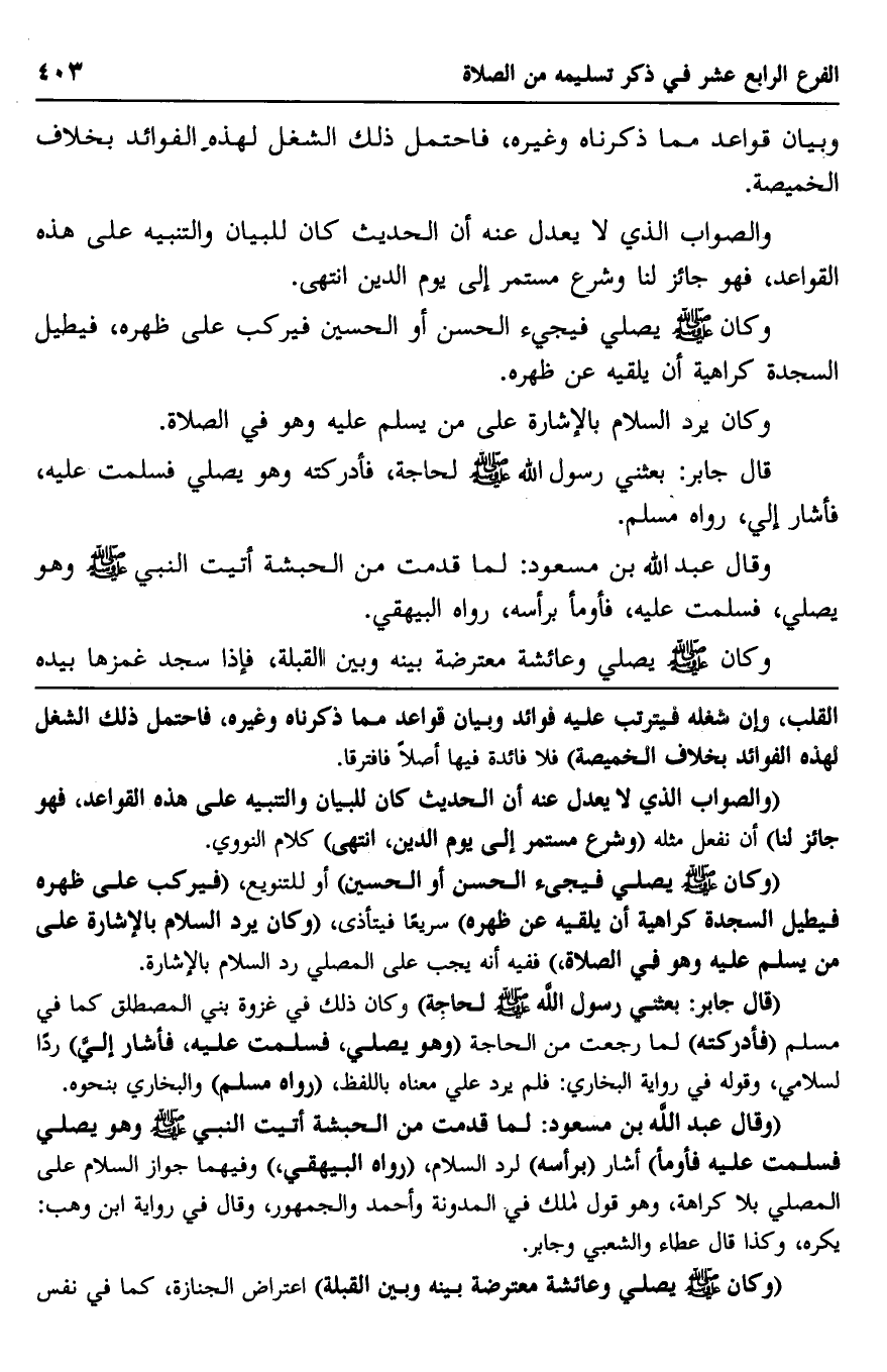 "قال جابر: بعثني رسول الله صلى الله عليه وسلم لحاجة" وكان ذلك في غزوة بني المصطلق كما في مسلم "فأدركته" لما رجعت من الحاجة "وهو يصلي، فسلمت عليه، فأشار إلي" ردًّا لسلامي، وقوله في رواية البخاري: فلم يرد علي معناه باللفظ، "رواه مسلم" والبخاري بنحوه.