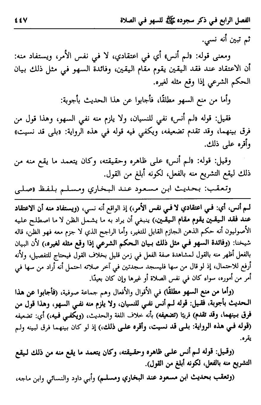 وأما من منع السهو مطلقا، فأجابوا عن هذا الحديث بأجوبة: