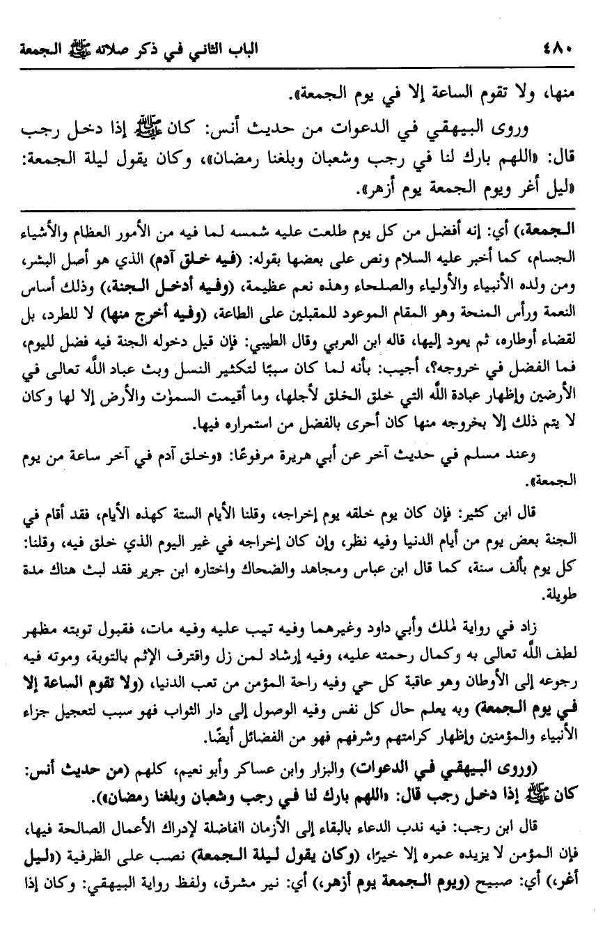 وروى البيهقي في الدعوات من حديث أنس: كان صلى الله عليه وسلم إذا دخل رجب قال: "اللهم بارك لنا في رجب وشعبان وبلغنا رمضان". وكان يقول ليلة الجمعة: "ليل أغر ويوم الجمعة يوم أزهر".