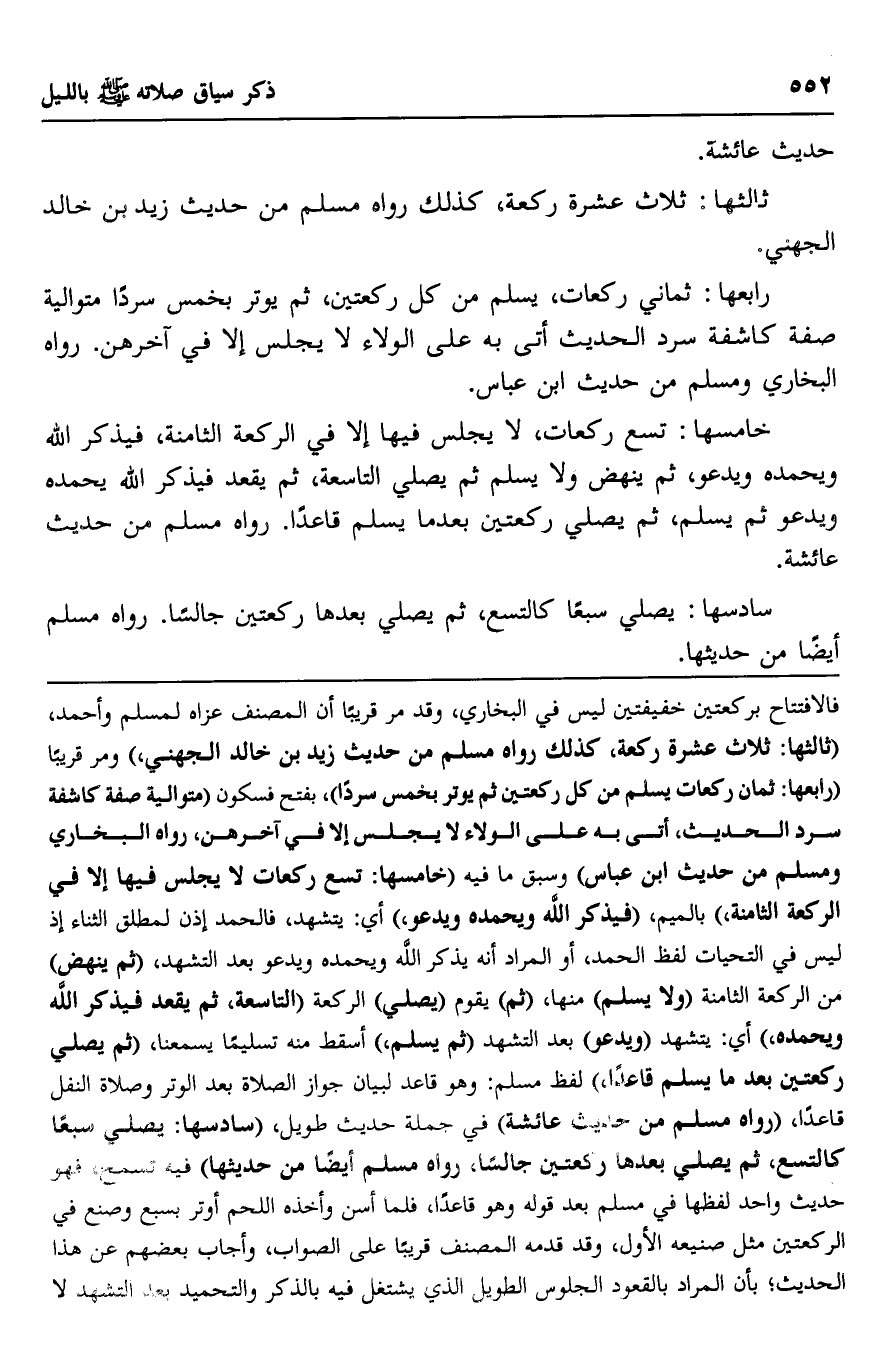 رابعها: ثماني ركعات، يسلم من كل ركعتين، ثم يوتر بخمس سردا متوالية صفة كاشفة سرد الحديث أتى به على الولاء لا يجلس إلا في آخرهن. رواه البخاري ومسلم من حديث ابن عباس.