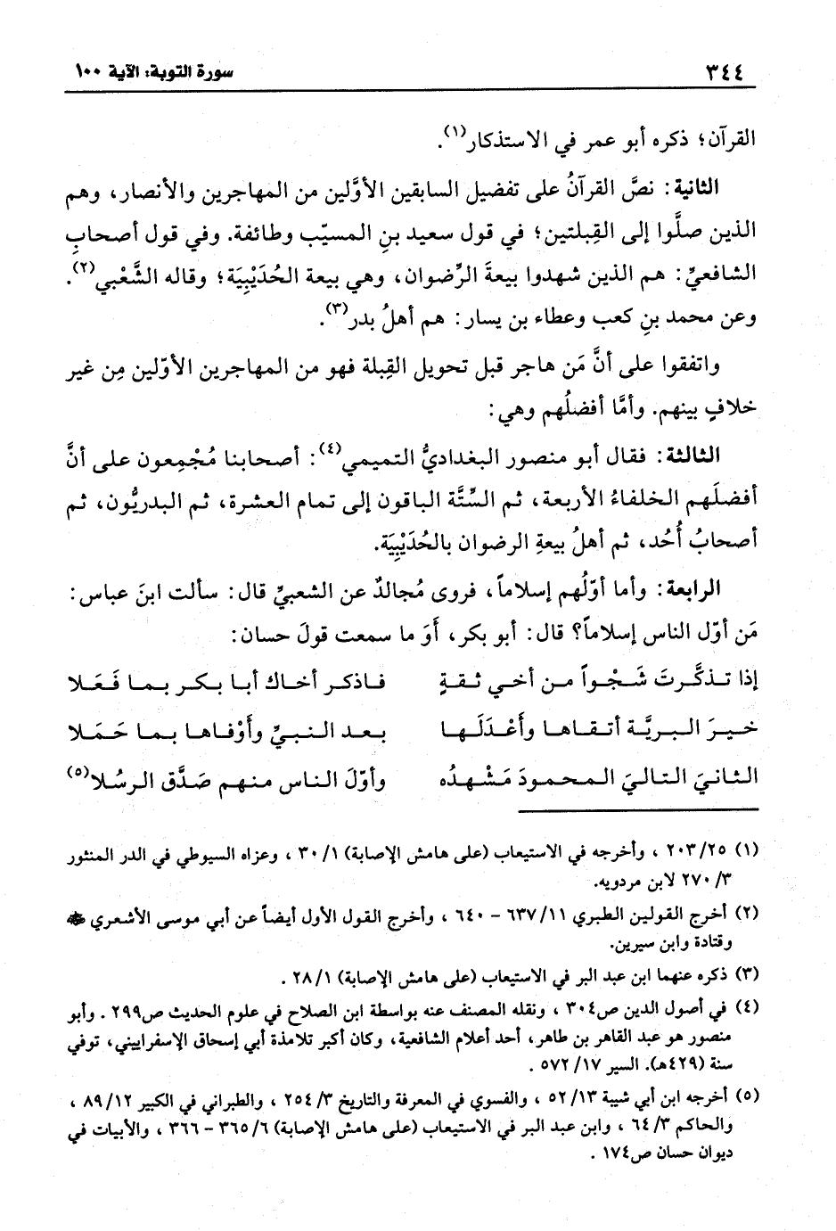 الثَّانِي- مَا رَوَاهُ مُسْلِمٌ أَيْضًا عَنْ عَائِشَةَ فِي قَوْلِهِ عَزَّ وَجَلَّ:" وَلا تَجْهَرْ بِصَلاتِكَ وَلا تُخافِتْ بِها" قَالَتْ: أُنْزِلَ هَذَا فِي الدُّعَاءِ. الثَّالِثِ- قَالَ ابْنُ سِيرِينَ: كَانَ الْأَعْرَابُ يَجْهَرُونَ بِتَشَهُّدِهِمْ فَنَزَلَتِ الْآيَةُ فِي ذَلِكَ. قُلْتُ: وَعَلَى هَذَا فَتَكُونُ الْآيَةُ مُتَضَمِّنَةٌ لِإِخْفَاءِ التَّشَهُّدِ، وَقَدْ قَالَ ابْنُ مَسْعُودٍ: مِنَ السُّنَّةِ أَنْ تُخْفِيَ التَّشَهُّدَ، ذَكَرَهُ ابْنُ الْمُنْذِرِ. الرَّابِعُ- مَا رُوِيَ عَنِ ابْنِ سِيرِينَ أَيْضًا أَنَّ أَبَا بَكْرٍ رَضِيَ اللَّهُ عَنْهُ كَانَ يُسِرُّ قِرَاءَتَهُ، وَكَانَ عُمَرُ يَجْهَرُ بِهَا، فَقِيلَ لَهُمَا فِي ذَلِكَ، فَقَالَ أَبُو بَكْرٍ: إِنَّمَا أُنَاجِي رَبِّي، وَهُوَ يَعْلَمُ حَاجَتِي إِلَيْهِ. وَقَالَ عُمَرُ: أَنَا أَطْرُدُ الشَّيْطَانَ وَأُوقِظُ الْوَسْنَانَ، فَلَمَّا نَزَلَتْ هَذِهِ الْآيَةُ قِيلَ لِأَبِي بَكْرٍ: ارْفَعْ قَلِيلًا، وَقِيلَ لِعُمَرَ اخْفِضْ أَنْتَ قَلِيلًا، ذَكَرَهُ الطَّبَرِيُّ وَغَيْرُهُ. الْخَامِسُ- مَا رُوِيَ عَنِ ابْنِ عَبَّاسٍ أَيْضًا أَنَّ مَعْنَاهَا وَلَا تَجْهَرْ بِصَلَاةِ النَّهَارِ، وَلَا تُخَافِتْ بِصَلَاةِ اللَّيْلِ، ذَكَرَهُ يَحْيَى بْنُ سَلَامٍ وَالزَّهْرَاوِيُّ. فَتَضَمَّنَتْ أَحْكَامَ الْجَهْرِ وَالْإِسْرَارَ بِالْقِرَاءَةِ فِي النَّوَافِلِ وَالْفَرَائِضِ، فَأَمَّا النَّوَافِلُ فَالْمُصَلِّي مُخَيَّرٌ فِي الْجَهْرِ وَالسِّرِّ فِي اللَّيْلِ وَالنَّهَارِ، وَكَذَلِكَ رُوِيَ عَنِ النَّبِيِّ صَلَّى اللَّهُ عَلَيْهِ وَسَلَّمَ أَنَّهُ كَانَ يَفْعَلُ الْأَمْرَيْنِ جَمِيعًا. وَأَمَّا الْفَرَائِضُ فَحُكْمُهَا فِي الْقِرَاءَةِ مَعْلُومٌ لَيْلًا وَنَهَارًا وَقَوْلٌ سَادِسٌ- قَالَ الْحَسَنُ: يَقُولُ اللَّهُ لَا تُرَائِي بِصَلَاتِكَ تُحَسِّنُهَا فِي الْعَلَانِيَةِ وَلَا تُسِيئُهَا فِي السِّرِّ. وَقَالَ ابْنُ عَبَّاسٍ: لَا تُصَلِّ مُرَائِيًا لِلنَّاسِ وَلَا تَدَعْهَا مَخَافَةَ النَّاسِ. الثَّانِيَةُ- عَبَّرَ تَعَالَى بِالصَّلَاةِ هُنَا عَنِ الْقِرَاءَةِ كَمَا عَبَّرَ بِالْقِرَاءَةِ عَنِ الصَّلَاةِ فِي قَوْلِهِ:" وَقُرْآنَ الْفَجْرِ إِنَّ قُرْآنَ الْفَجْرِ كانَ مَشْهُوداً" لِأَنَّ كُلَّ وَاحِدٍ مِنْهُمَا مُرْتَبِطٌ بِالْآخَرِ، لِأَنَّ الصَّلَاةَ تَشْتَمِلُ عَلَى قِرَاءَةٍ وَرُكُوعٍ وَسُجُودٍ فَهِيَ مِنْ جُمْلَةِ أَجْزَائِهَا، فَعَبَّرَ بِالْجُزْءِ عَنِ الْجُمْلَةِ وَبِالْجُمْلَةِ عَنِ الْجُزْءِ عَلَى عَادَةِ الْعَرَبِ فِي الْمَجَازِ وَهُوَ كَثِيرٌ، وَمِنْهُ الْحَدِيثُ الصَّحِيحُ:" قَسَمْتُ الصَّلَاةَ بَيْنِي وَبَيْنَ عَبْدِي" أَيْ قِرَاءَةَ الْفَاتِحَةِ عَلَى مَا تَقَدَّمَ.