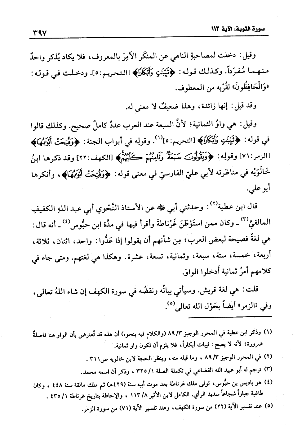 فَالْإِسْتَبْرَقُ الدِّيبَاجُ. ابْنُ بَحْرٍ: الْمَنْسُوجُ بِالذَّهَبِ. الْقُتَبِيُّ: فَارِسِيٌّ مُعَرَّبٌ. الْجَوْهَرِيُّ: وَتَصْغِيرُهُ أُبَيْرَقٌ. وَقِيلَ: هُوَ اسْتَفْعَلَ مِنَ الْبَرِيقِ. وَالصَّحِيحُ أَنَّهُ وِفَاقٌ بَيْنَ اللُّغَتَيْنِ، إِذْ لَيْسَ فِي الْقُرْآنِ مَا لَيْسَ مِنْ لُغَةِ الْعَرَبِ، عَلَى مَا تَقَدَّمَ، وَاللَّهُ أَعْلَمُ. وَخُصَّ الْأَخْضَرُ بِالذِّكْرِ لِأَنَّهُ الْمُوَافِقُ لِلْبَصَرِ، لِأَنَّ الْبَيَاضَ يُبَدِّدُ النَّظَرَ وَيُؤْلِمُ، وَالسَّوَادَ يُذَمُّ، وَالْخُضْرَةُ بَيْنَ الْبَيَاضِ وَالسَّوَادِ، وَذَلِكَ يَجْمَعُ الشُّعَاعَ. وَاللَّهُ أَعْلَمُ. رَوَى النَّسَائِيُّ عَنْ عَبْدِ اللَّهِ بْنِ عَمْرِو بْنِ الْعَاصِ فال: بَيْنَمَا نَحْنُ عِنْدَ رَسُولِ اللَّهِ صَلَّى اللَّهُ عَلَيْهِ وَسَلَّمَ إِذْ جَاءَهُ رَجُلٌ فَقَالَ: يَا رَسُولَ اللَّهِ، أَخْبِرْنَا عَنْ ثِيَابِ الْجَنَّةِ، أَخَلْقٌ يُخْلَقُ أَمْ نَسْجٌ يُنْسَجُ؟ فَضَحِكَ بَعْضُ الْقَوْمِ. فَقَالَ لَهُمْ:" مِمَّ تَضْحَكُونَ مِنْ جَاهِلٍ يَسْأَلُ عَالِمًا"؟ فَجَلَسَ يَسِيرًا أَوْ قَلِيلًا فَقَالَ رَسُولُ اللَّهِ صَلَّى اللَّهُ عَلَيْهِ وَسَلَّمَ:" أَيْنَ السَّائِلُ عَنْ ثِيَابِ الْجَنَّةِ"؟ فَقَالَ: هَا هُوَ ذَا يَا رَسُولُ اللَّهِ، قَالَ" لَا بَلْ تَشَّقَّقُ عَنْهَا ثَمَرُ الْجَنَّةِ" قَالَهَا ثَلَاثًا. وَقَالَ أَبُو هُرَيْرَةَ: دَارُ الْمُؤْمِنِ دُرَّةٌ مُجَوَّفَةٌ فِي وَسَطِهَا شَجَرَةٌ تُنْبِتُ الْحُلَلَ وَيَأْخُذُ بِأُصْبُعِهِ أَوْ قَالَ بِأُصْبُعَيْهِ سَبْعِينَ حُلَّةً مُنَظَّمَةً بِالدُّرِّ وَالْمَرْجَانِ. ذَكَرَهُ يَحْيَى بْنُ سَلَامٍ فِي تَفْسِيرِهِ وَابْنُ الْمُبَارَكِ فِي رَقَائِقِهِ. وَقَدْ ذَكَرْنَا إِسْنَادَهُ فِي كِتَابِ التَّذْكِرَةِ. وَذُكِرَ فِي الْحَدِيثِ أَنَّهُ يَكُونُ عَلَى كُلٍّ وَاحِدٍ مِنْهُمُ الْحُلَّةُ لَهَا وَجْهَانِ لِكُلِّ وَجْهٍ لَوْنٌ، يَتَكَلَّمَانِ بِهِ بِصَوْتٍ يَسْتَحْسِنُهُ سَامِعُهُ، يَقُولُ أَحَدُ الْوَجْهَيْنِ لِلْآخَرِ: أَنَا أَكْرَمُ عَلَى وَلِيِّ اللَّهِ مِنْكَ، أَنَا أَلِي جَسَدَهُ وَأَنْتَ لَا تَلِي. وَيَقُولُ الْآخَرُ: أَنَا أَكْرَمُ عَلَى وَلِيِّ اللَّهِ مِنْكَ، أَنَا أُبْصِرُ وَجْهَهُ وَأَنْتَ لا تبصر.
