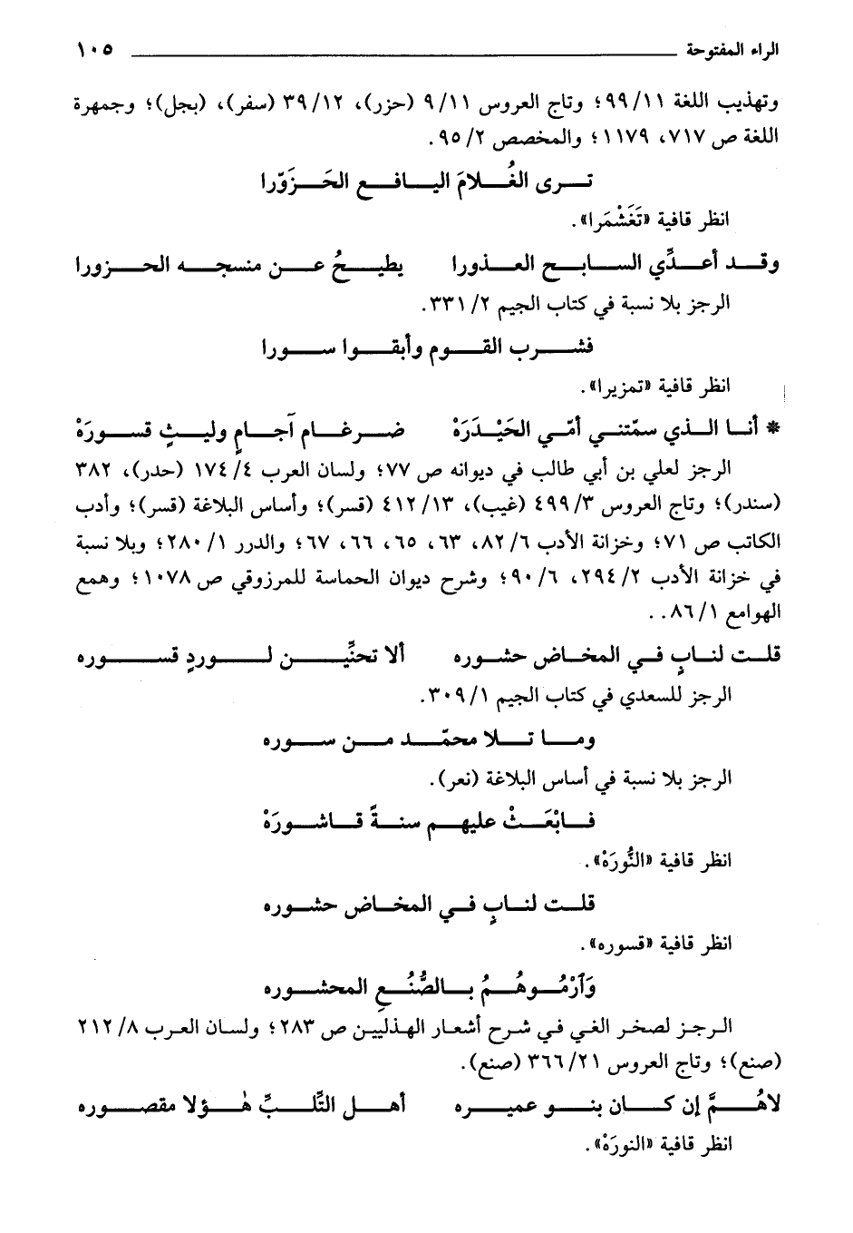 وتهذيب اللغة 11/ 99؛ وتاج العروس 11/ 9 (حزر)، 12/ 39 (سفر)، (بجل)؛ وجمهرة اللغة ص 717، 1179؛ والمخصص 2/ 95.