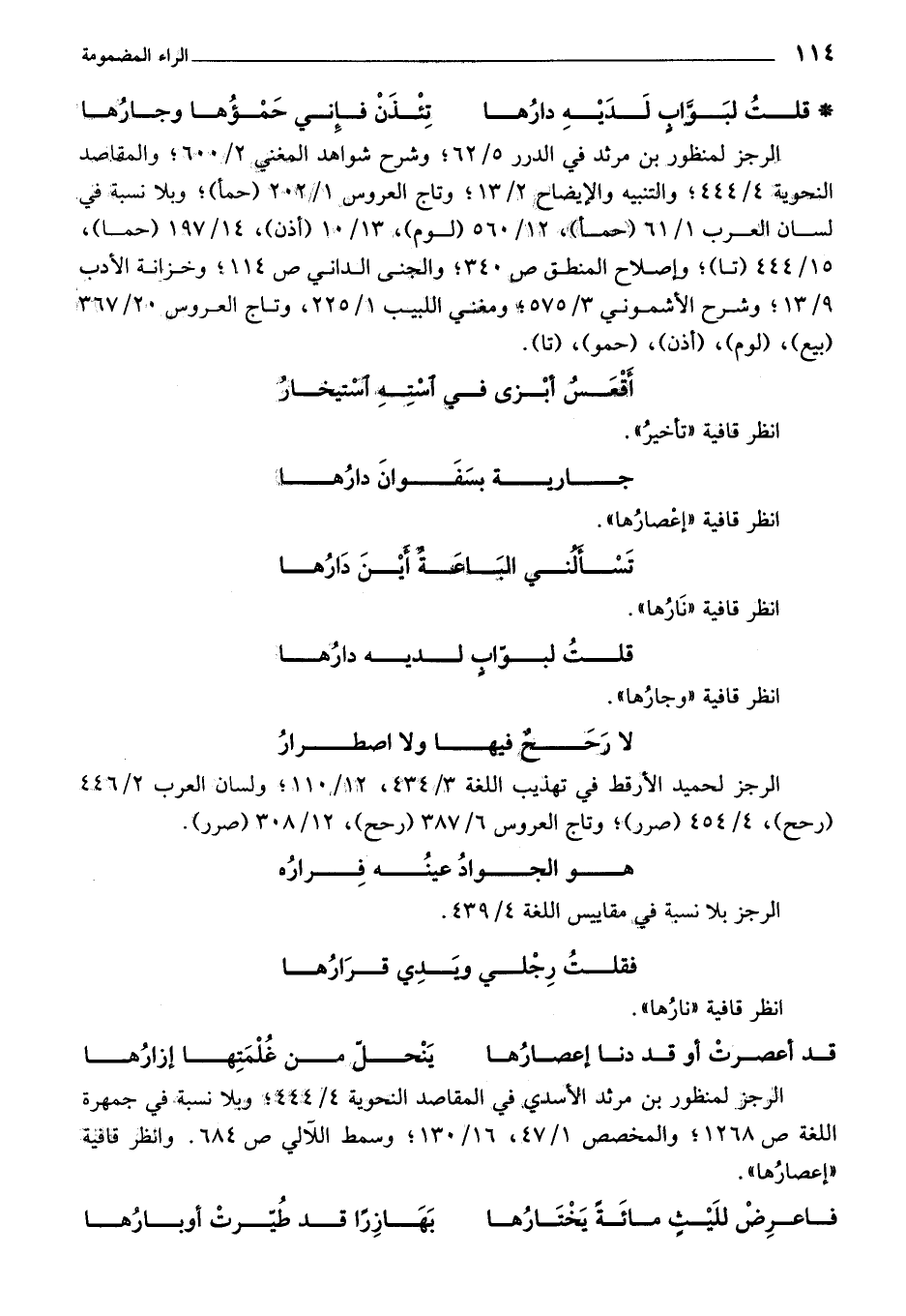 الرجز لمنظور بن مرثد الأسدي في المقاصد النحوية 4/ 444؛ وبلا نسبة في جمهرة اللغة ص 1268؛ والمخصص 1/ 47، 16/ 130؛ وسمط اللآلي ص 684. وانظر قافية «إعصارها».