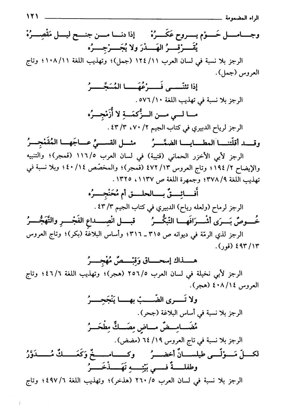 الرجز لأبي نخيلة في لسان العرب 5/ 256 (هجر)؛ وتهذيب اللغة 6/ 46؛ وتاج العروس 14/ 408 (هجر).