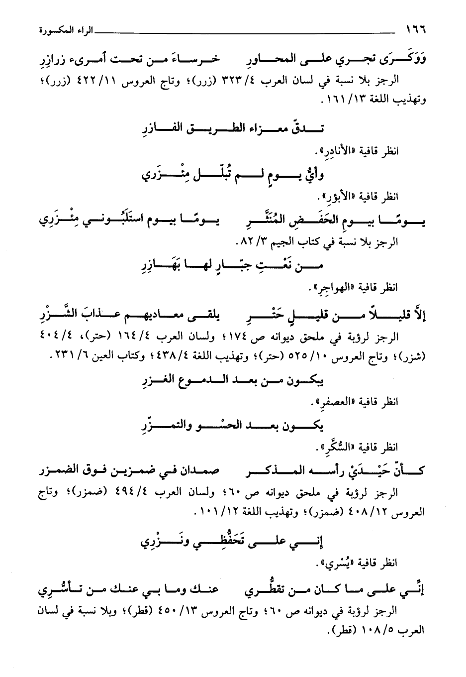 الرجز بلا نسبة في لسان العرب 4/ 323 (زرر)؛ وتاج العروس 11/ 422 (زرر)؛ وتهذيب اللغة 13/ 161.