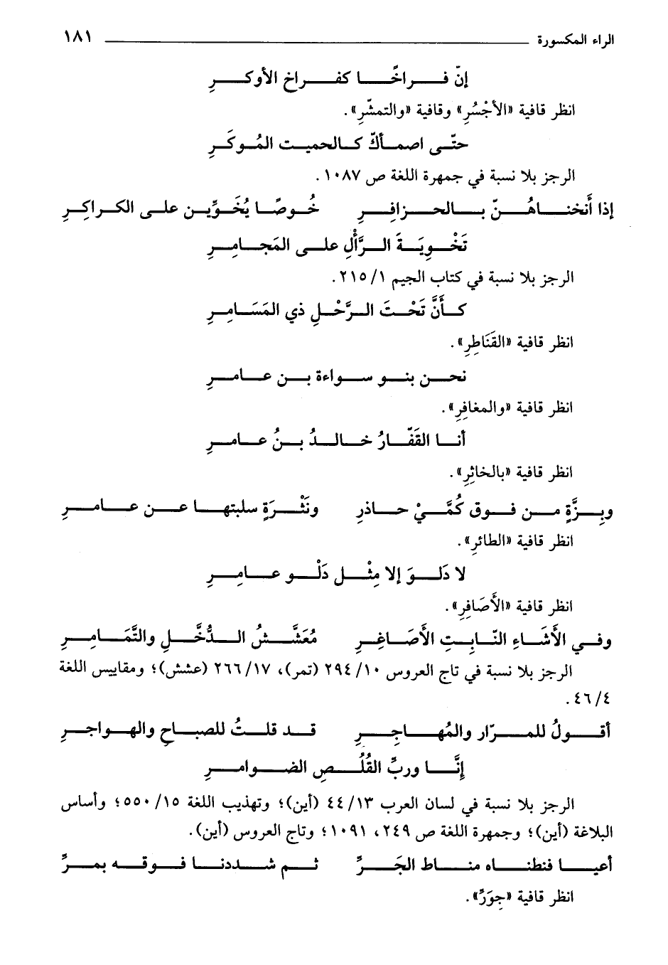 انظر قافية «الأجسر» وقافية «والتمشر».