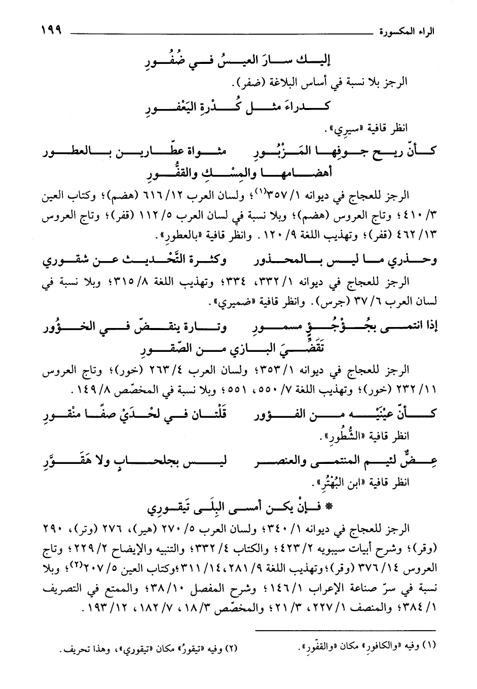 الرجز للعجاج في ديوانه 1/ 357 (¬1)؛ ولسان العرب 12/ 616 (هضم)؛ وكتاب العين 3/ 410؛ وتاج العروس (هضم)؛ وبلا نسبة في لسان العرب 5/ 112 (قفر)؛ وتاج العروس 13/ 462 (قفر)؛ وتهذيب اللغة 9/ 120. وانظر قافية «بالعطور».