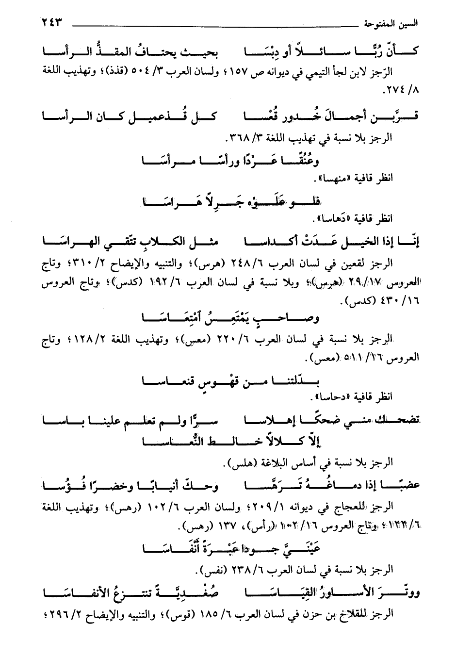 الرجز للعجاج في ديوانه 1/ 209؛ ولسان العرب 6/ 102 (رهس)؛ وتهذيب اللغة 6/ 122؛ وتاج العروس 16/ 102 (رأس)، 137 (رهس).