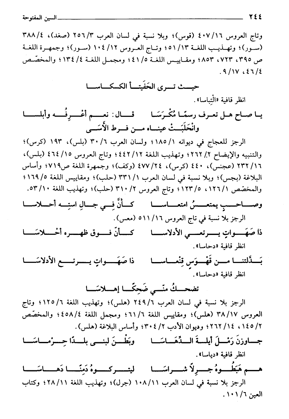 الرجز للعجاج في ديوانه 1/ 185؛ ولسان العرب 6/ 30 (بلس)، 193 (كرس)؛ والتنبيه والإيضاح 2/ 262؛ وتهذيب اللغة 12/ 442؛ وتاج العروس 15/ 464 (بلس)، 16/ 232 (عجنس)، 440 (كرس)، 24/ 477 (وكف)؛ وجمهرة الغة ص 719؛ وأساس البلاغة (بجس)؛ وبلا نسبة في لسان العرب 1/ 331 (حلب)؛ ومقاييس اللغة 5/ 169؛ والمخصص 1/ 126، 5/ 123؛ وتاج العروس 2/ 310 (حلب)؛ وتهذيب اللغة 10/ 53.