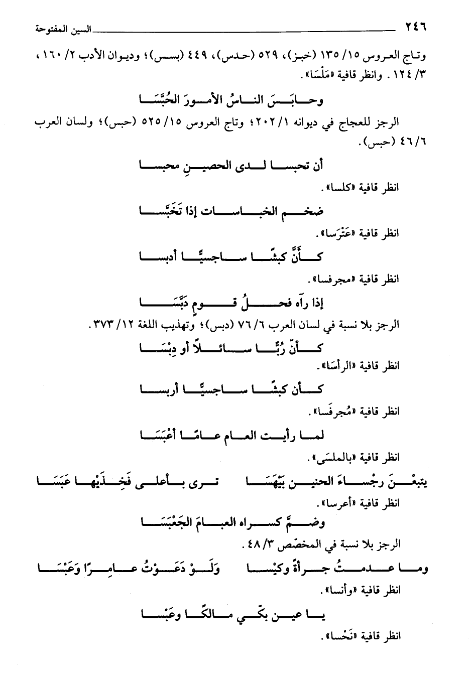 وتاج العروس 15/ 135 (خبز)، 529 (حدس)، 449 (بسس)؛ وديوان الأدب 2/ 160، 3/ 124. وانظر قافية «ملسا».